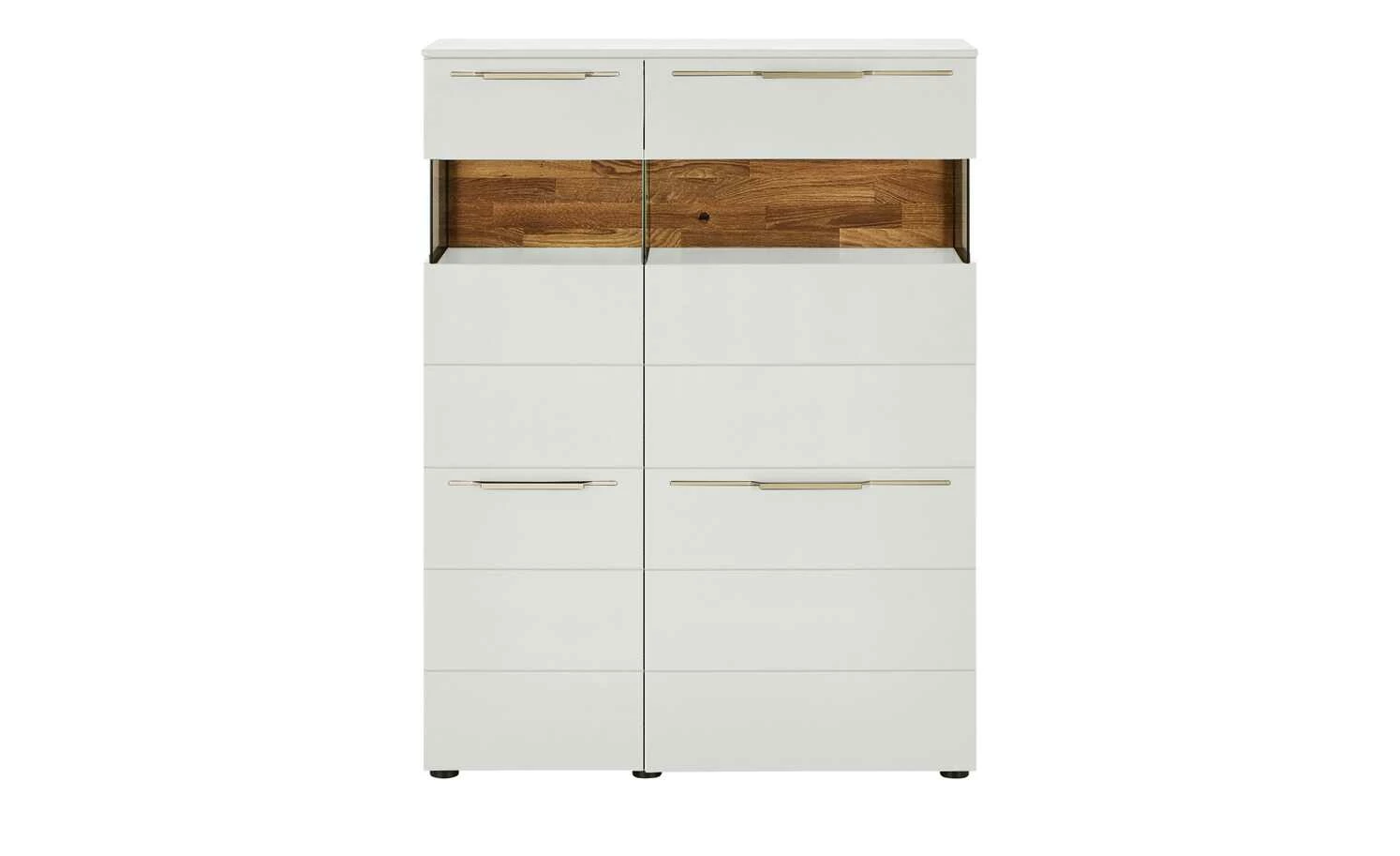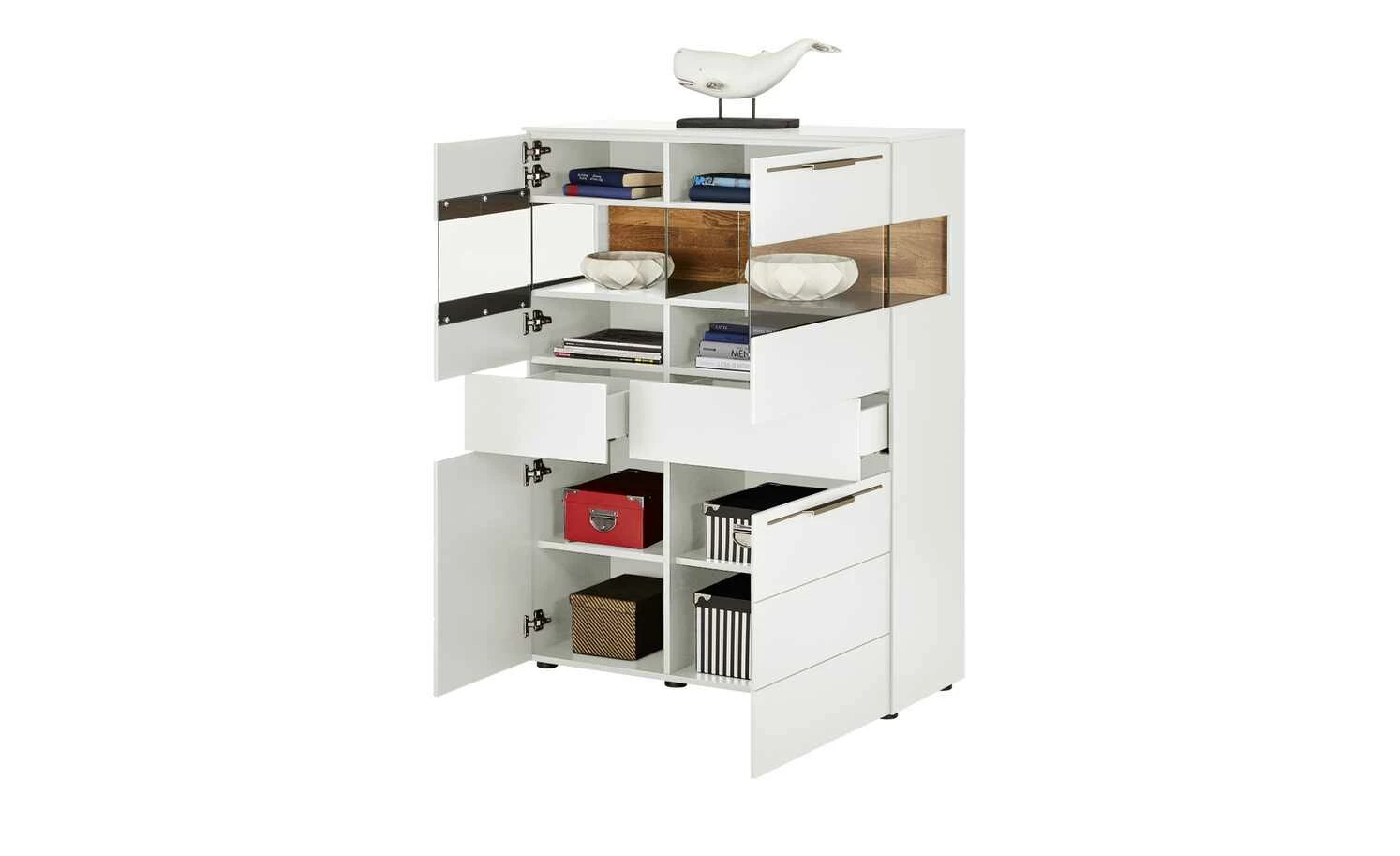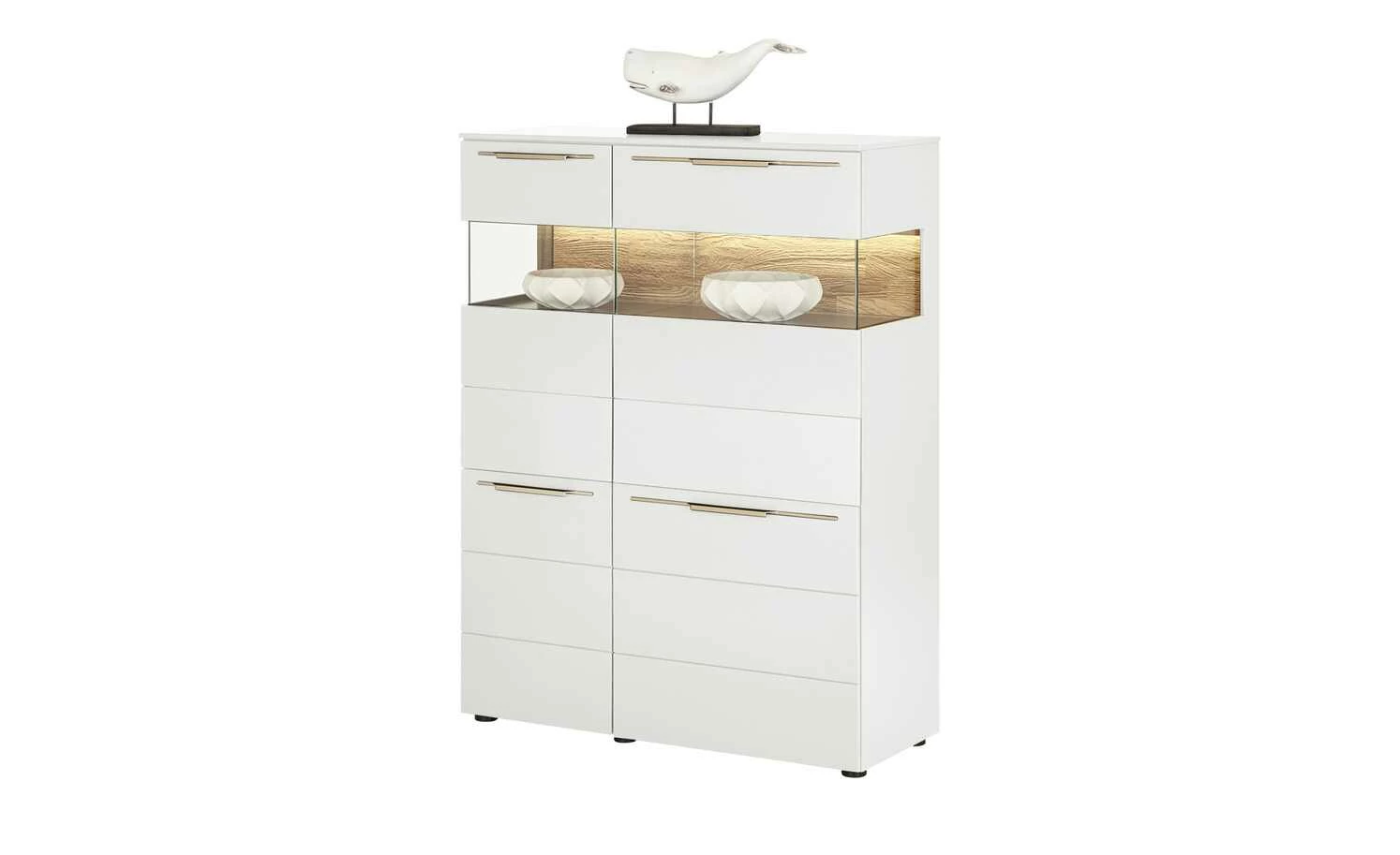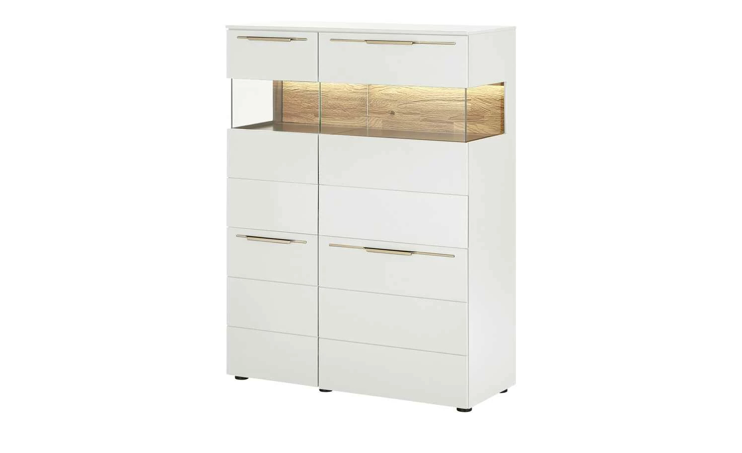 - Mehr zur Ausführung: 2 Holztüren und 2 Türen mit Glaseinsatz, Korpus mit Seitenverglasung