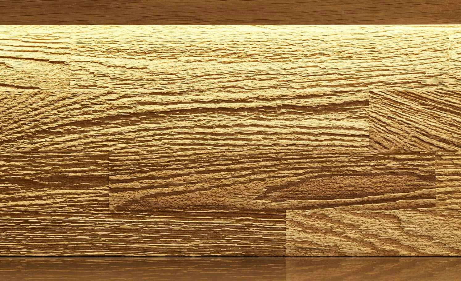 - Ausführung: Sichtbare Rückwand: Wildeiche furniert, gesandstrahlt, mit Wachseffektlack behandelt