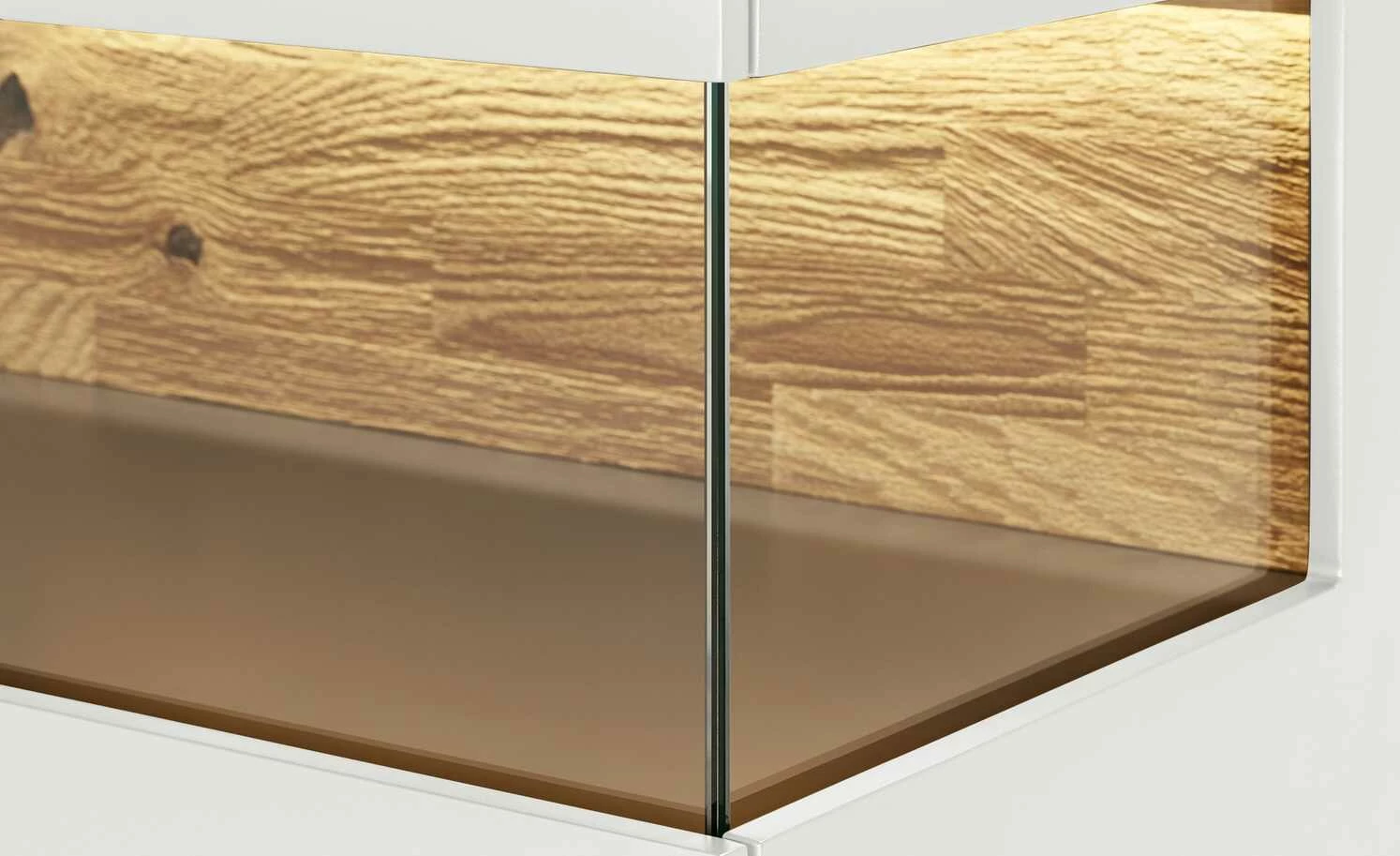 - Material Korpus: Holzwerkstoff lackiert, Glas