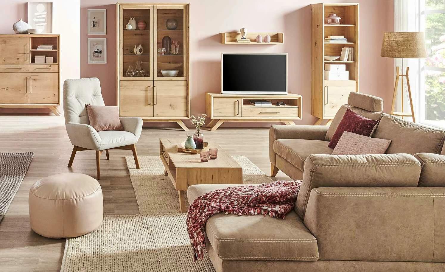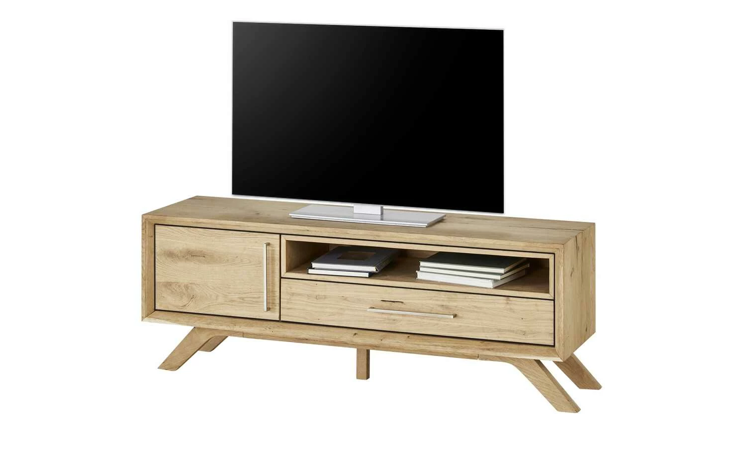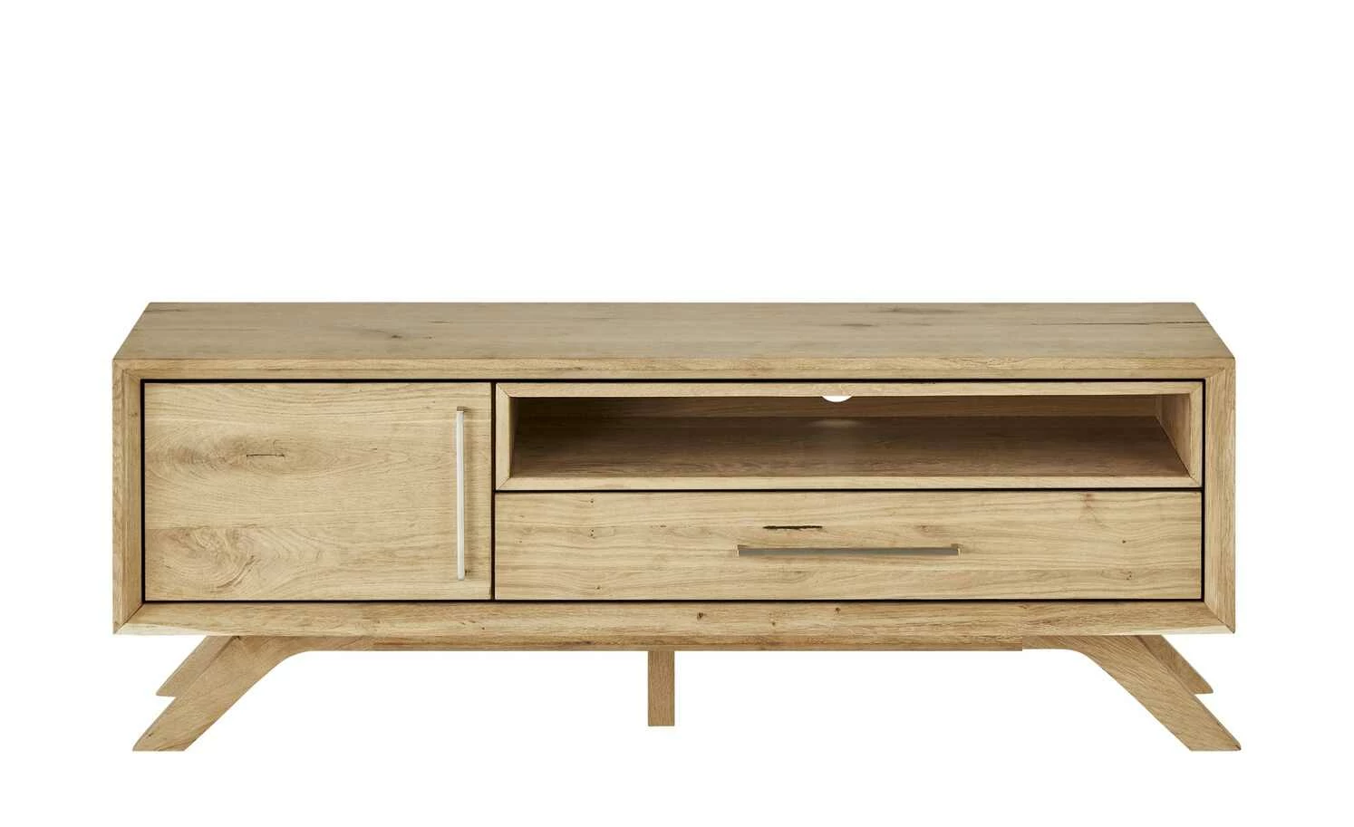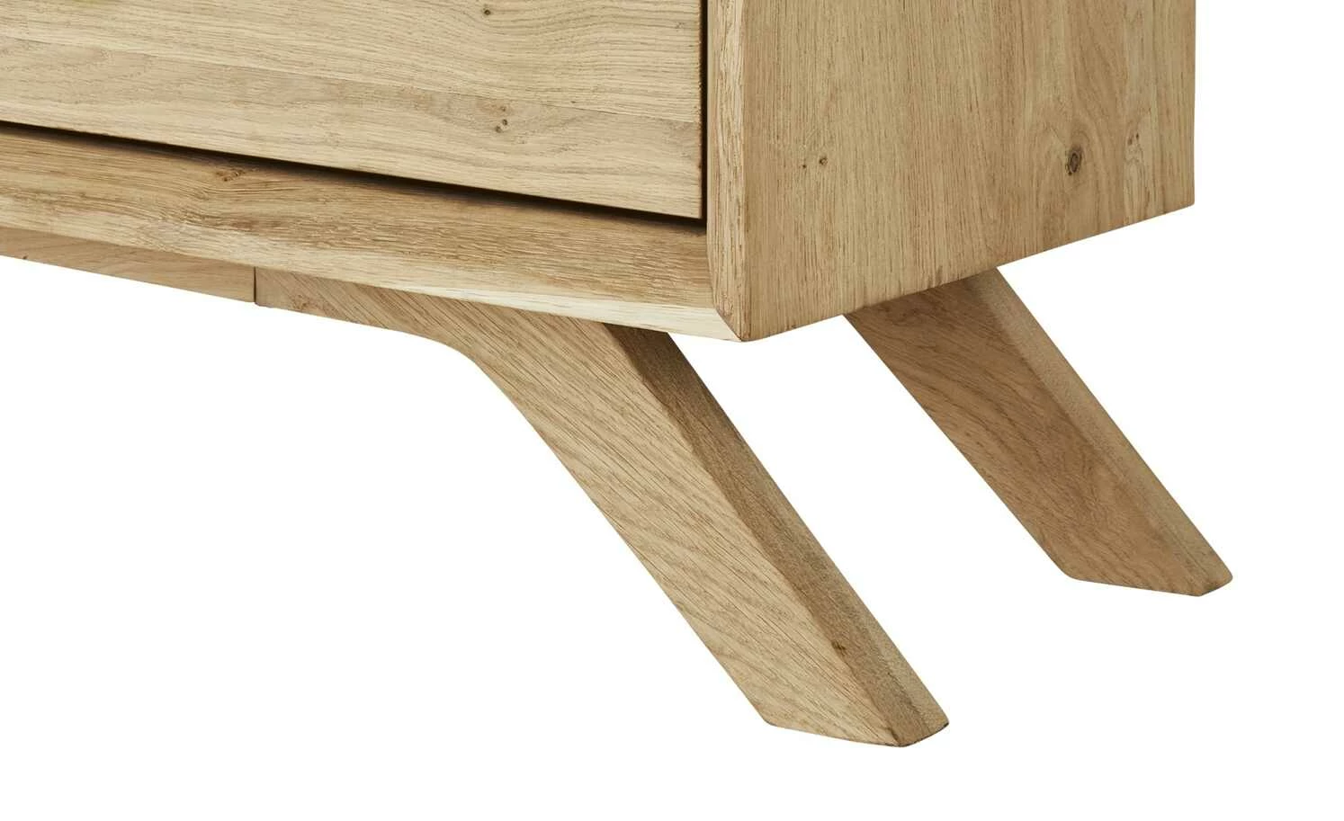 Das TV-Lowboard Cap Ferrat One hat ein natürliches Design mit Scandi-Charme. Es ist von der Marke Gray & Jones und besteht aus hochwertigen Materialien. So sind Front und Korpus mit Eiche furniert, für die Füße ist massive Eiche verwendet worden. Dank der unbehandelten Oberflächen kommt die holztypische Maserung wunderbar zur Geltung. Cap Ferrat One hat eine 150 cm breite Stellfläche für einen Fernseher. Das große Gerätefach ist mit einem Kabeldurchlass in der Rückwand ausgestattet. Stauraum befindet sich hinter Tür und in Schublade. Beide verfügen über eine Soft-Close-Ausstattung.