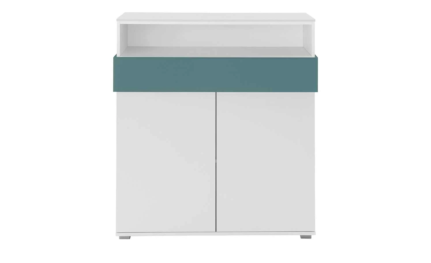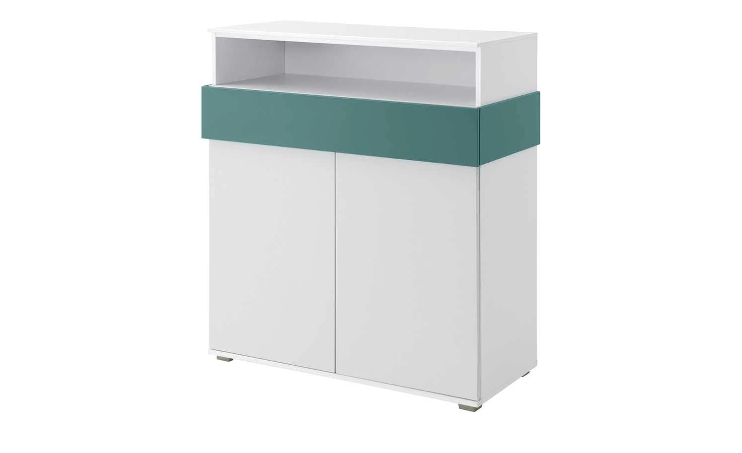 Holly ist ein stylisches Highboard für das Kinder- und Jugendzimmer. Sie können zwei Fächer hinter den beiden Türen und ein farblich abgesetztes Schubfach nutzen. Zusätzlich verfügt Holly über ein offenes Fach.