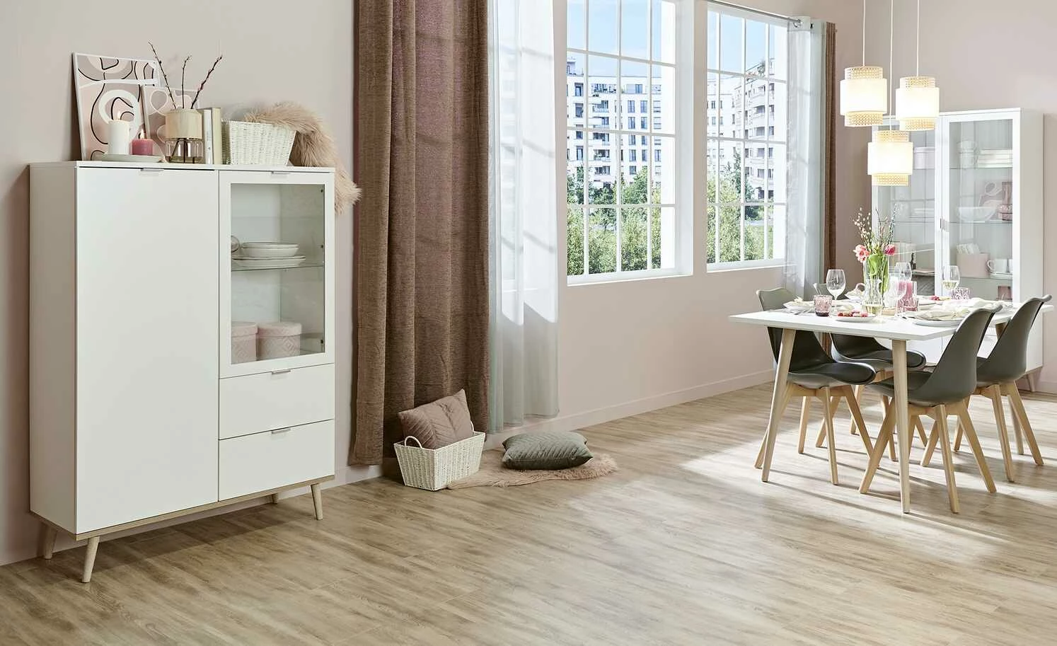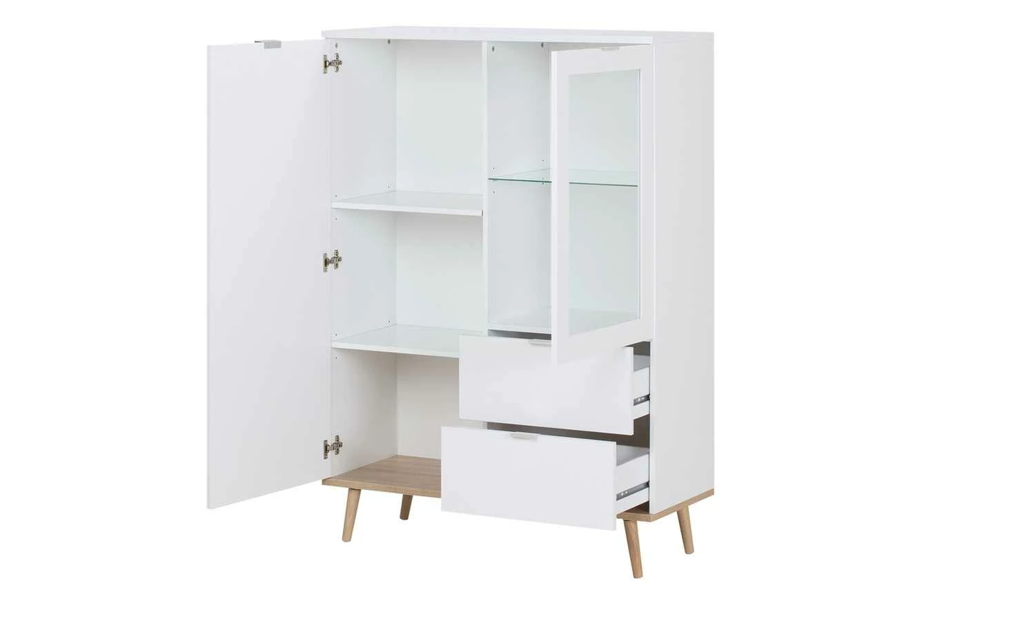 - Farbe / Dekor: Weiß / Eiche sägerau (Nachbildung)
