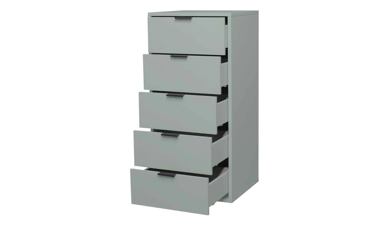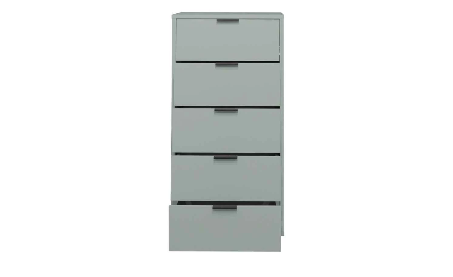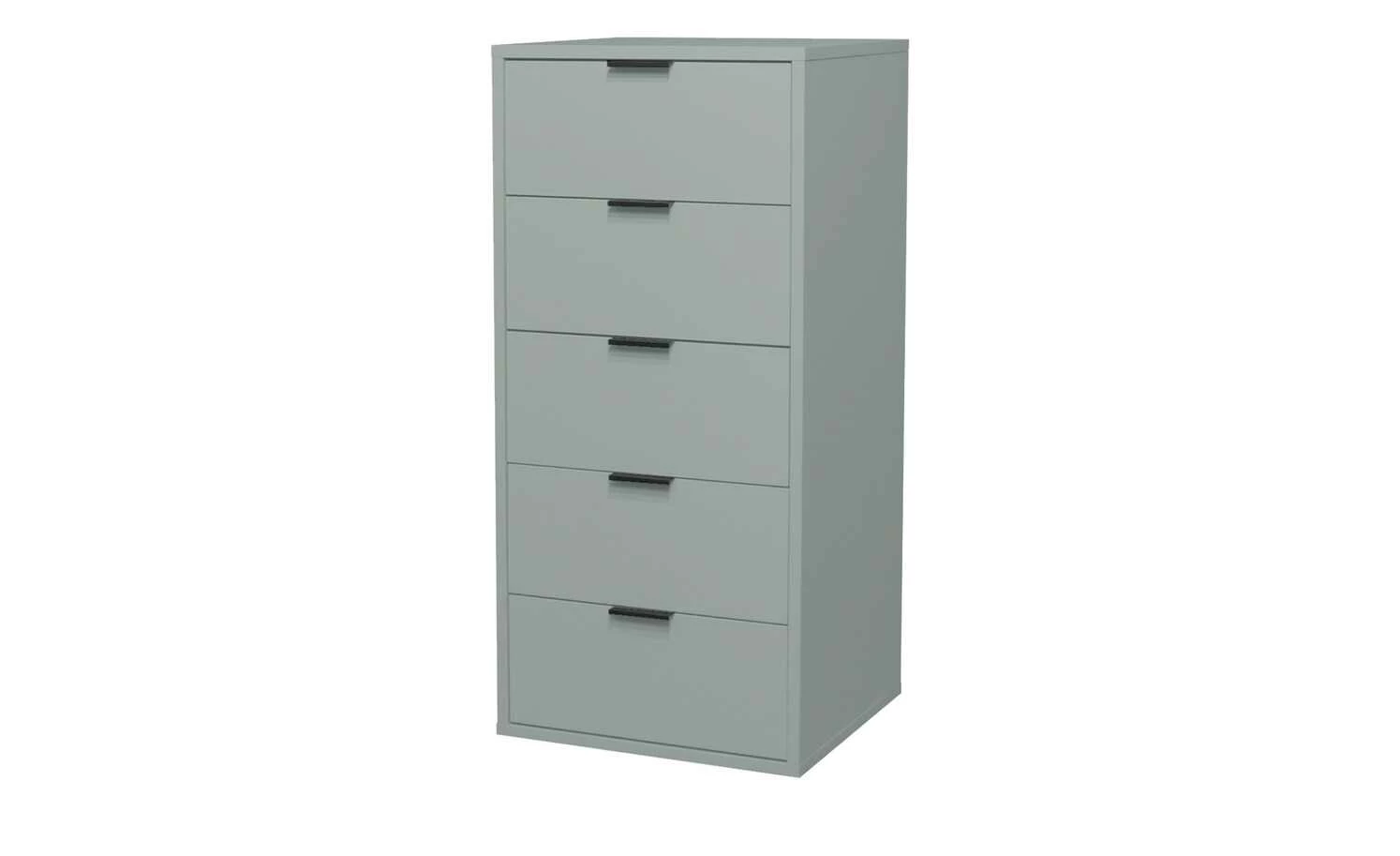 Schnörkelloses, modern-minimalistisches Design trifft auf zeitlose, kombinationsfreudige Farben. Die Serie Bonagia passt in zahlreiche Raumkonzepte und Zimmer. Nutzen Sie die fünf Schubfächer und schaffen Sie Ihr ganz eigenes Ordnungssystem. Ob im Wohn-, Schlaf-, oder Arbeitszimmer: Die Kommode Bonagia lässt sich vielseitig einsetzen. Unser Tipp: Kombinieren Sie die Kommode mit separaten, schwarzen Metallfüßen, um Ihren eigenen Stil einfließen zu lassen.