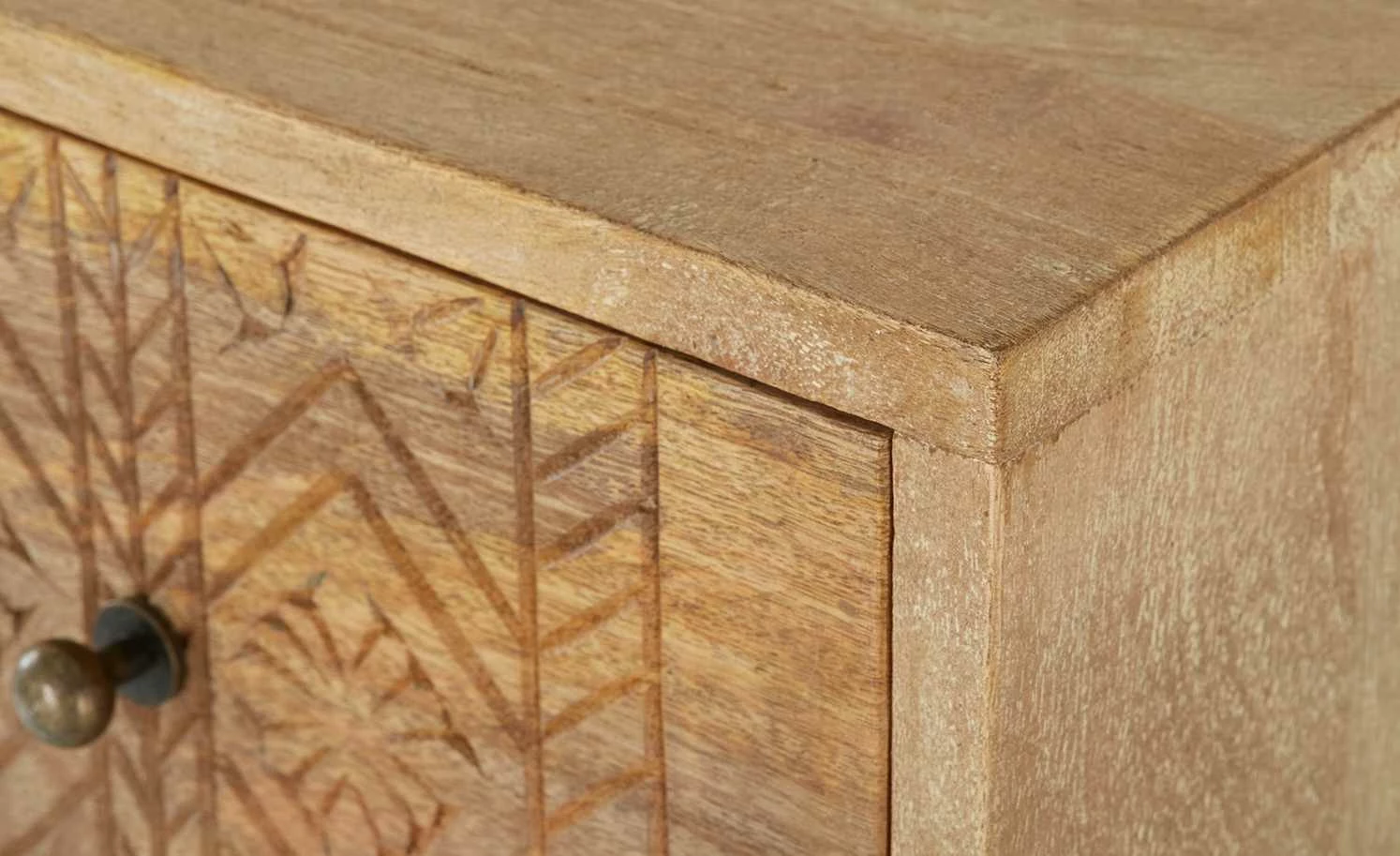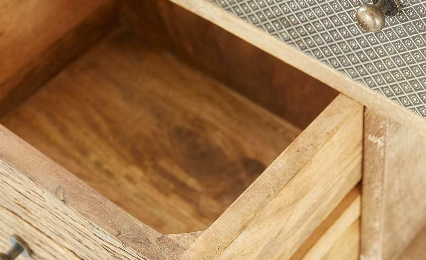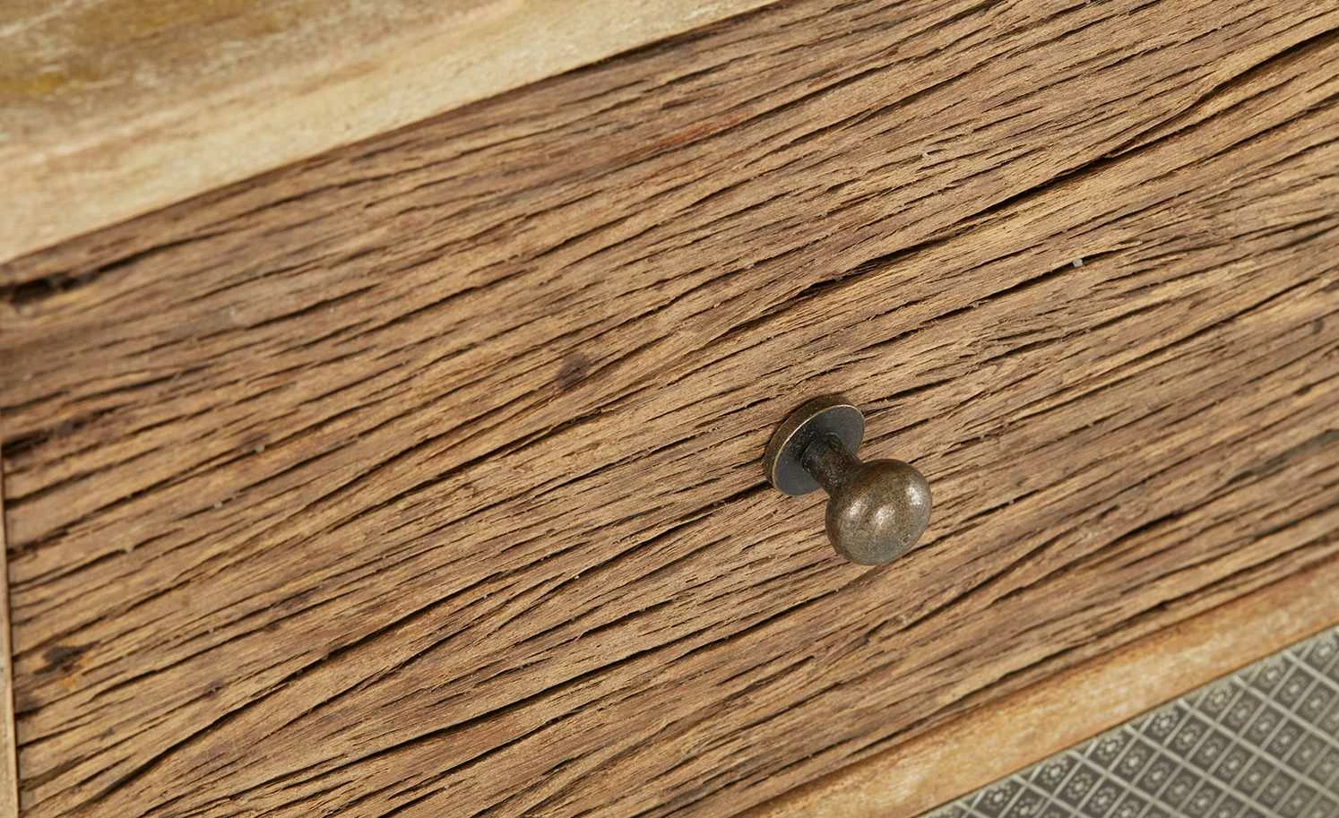 - Mehr zum Material: Absetzungen Front: Altholz gefrest, Metall belegt