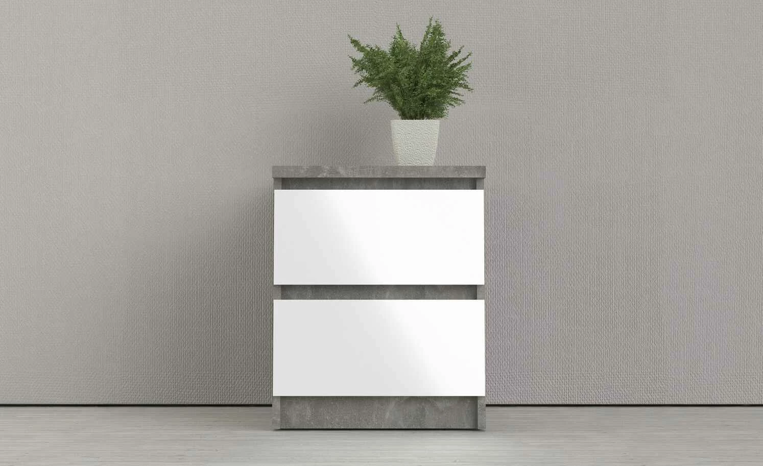 Kommode mit 2 Schüben Nardo | 49,5|cm Beton (Nachbildung) / Weiß