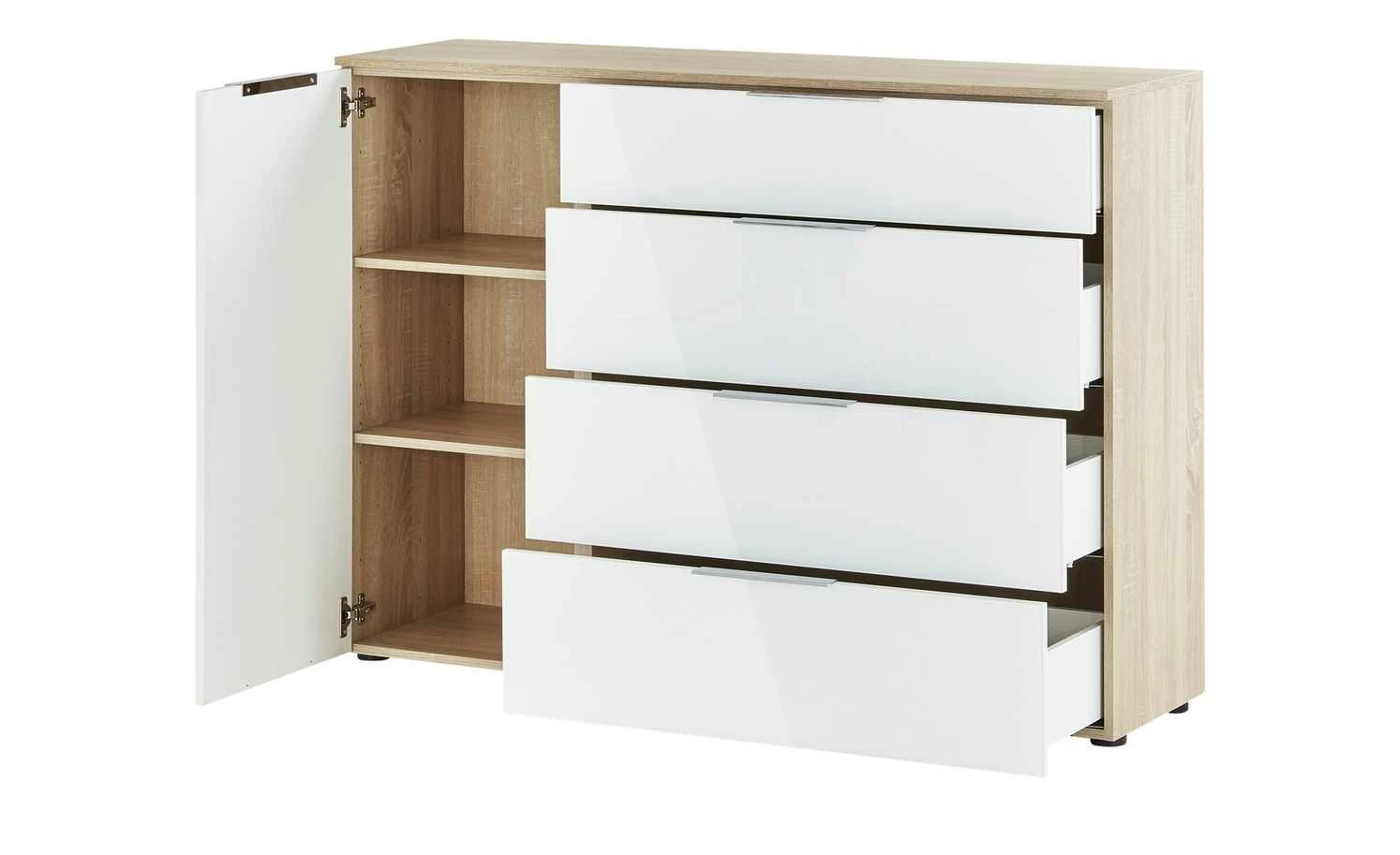 Kommode Vitreo | Eiche Sägerau (Nachbildung) / Weiß
