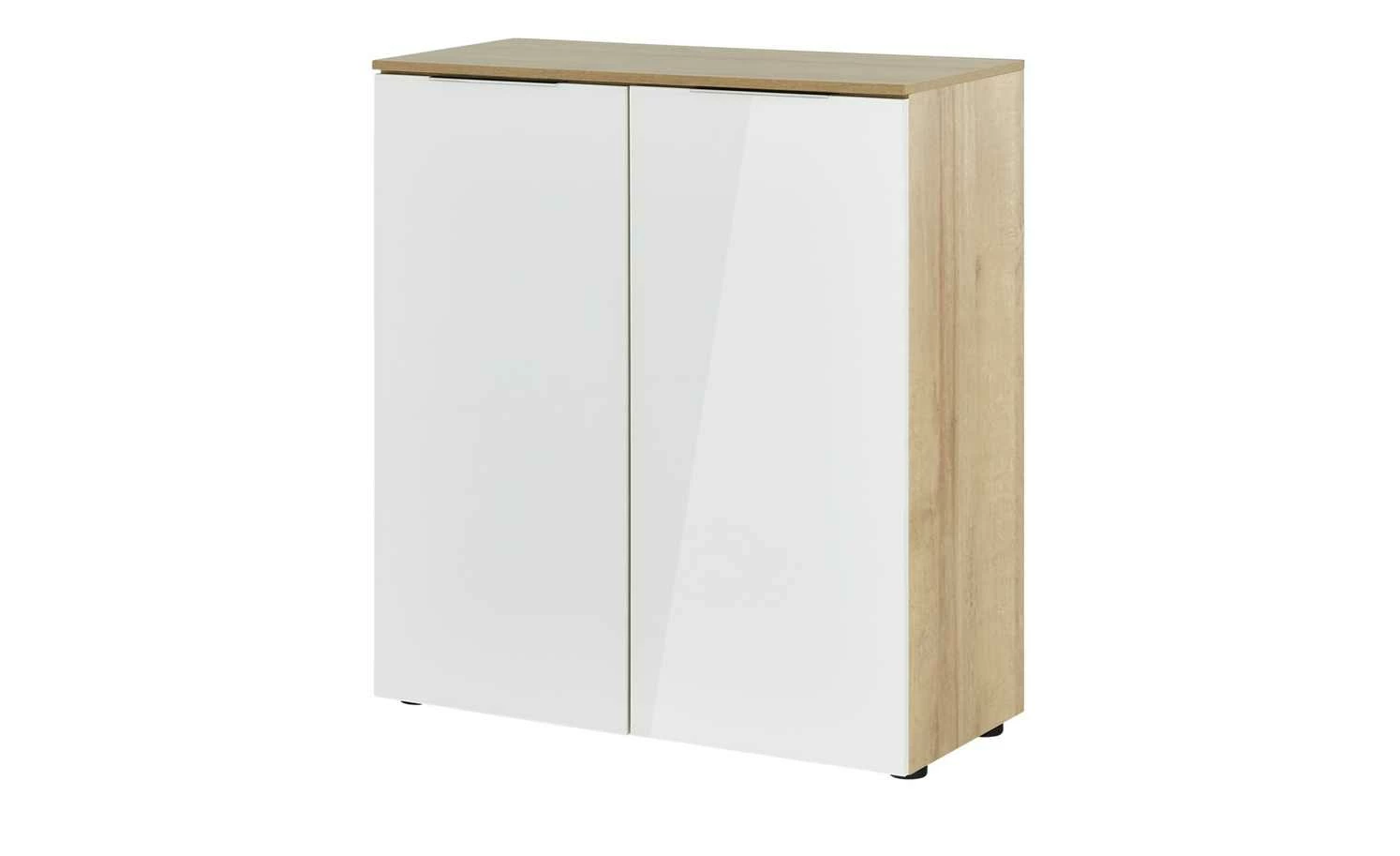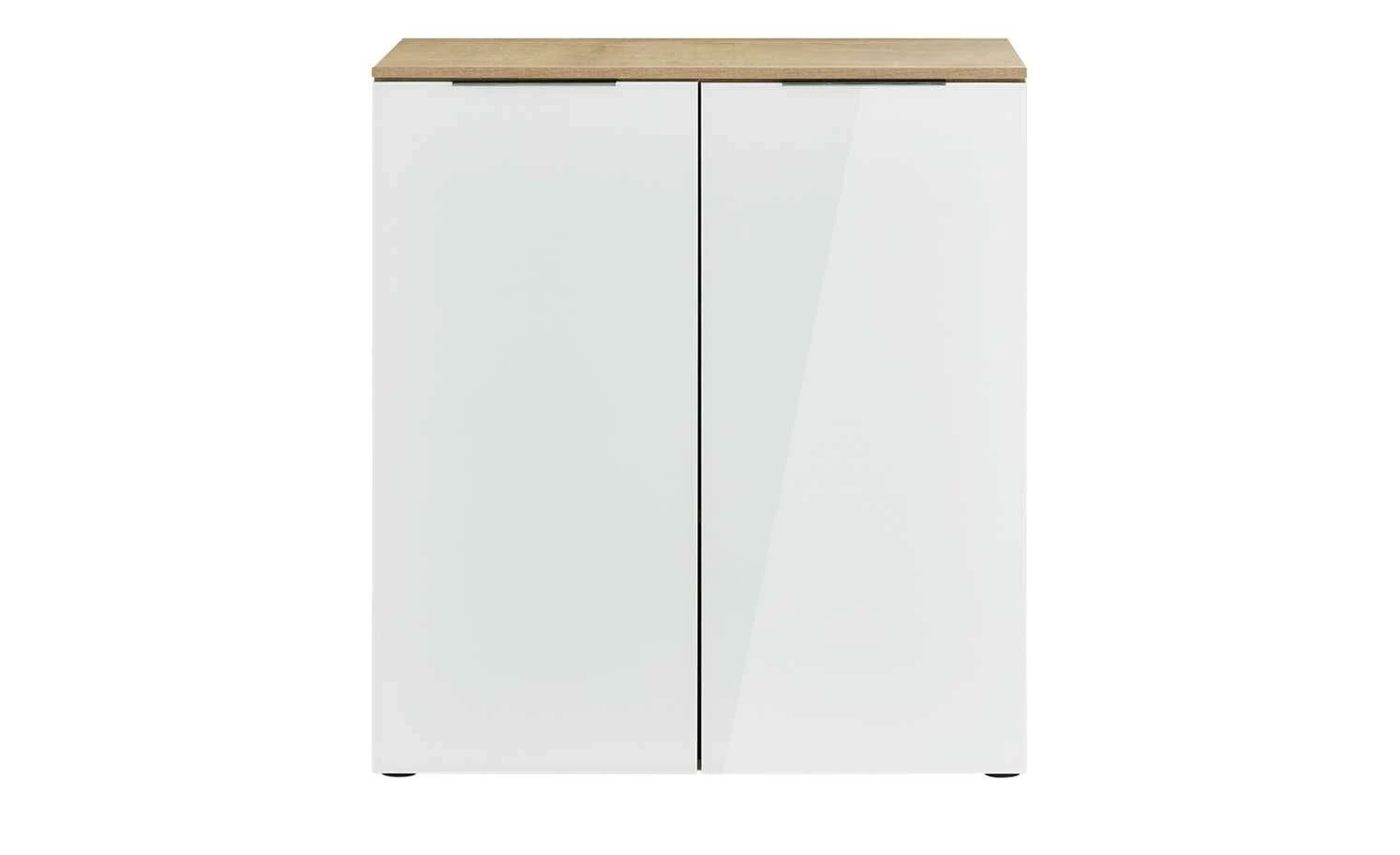 Mit ihrem modernen Look und praktischen Nutzen ist die Kommode Vitreo ein Highlight für jeden Raum. Die geradlinige Linienführung wird mit einem puren und leuchtenden Weiß kombiniert. Die Front hat eine Oberfläche aus ESG-Sicherheitsglas. Es ist besonders hart und widerstandsfähig – und gibt der Front ein glänzendes Finish. Zusätzliche Akzente werden durch die verchromten Griffleisten gesetzt. Der Korpus der Kommode hat eine natürliche Holzoptik. Er ist melaminbeschichtet und somit kratzerunempfindlich und leicht zu pflegen. Vitreo ist mit zwei Türen ausgestattet, hinter denen Ihnen drei Fächer zur Verfügung stehen. Beide Türen haben eine integrierte Soft-Close-Funktion für leises Schließen.