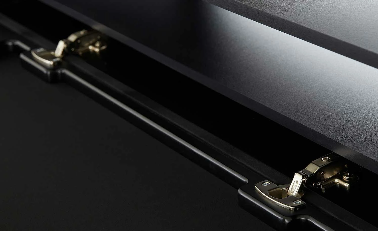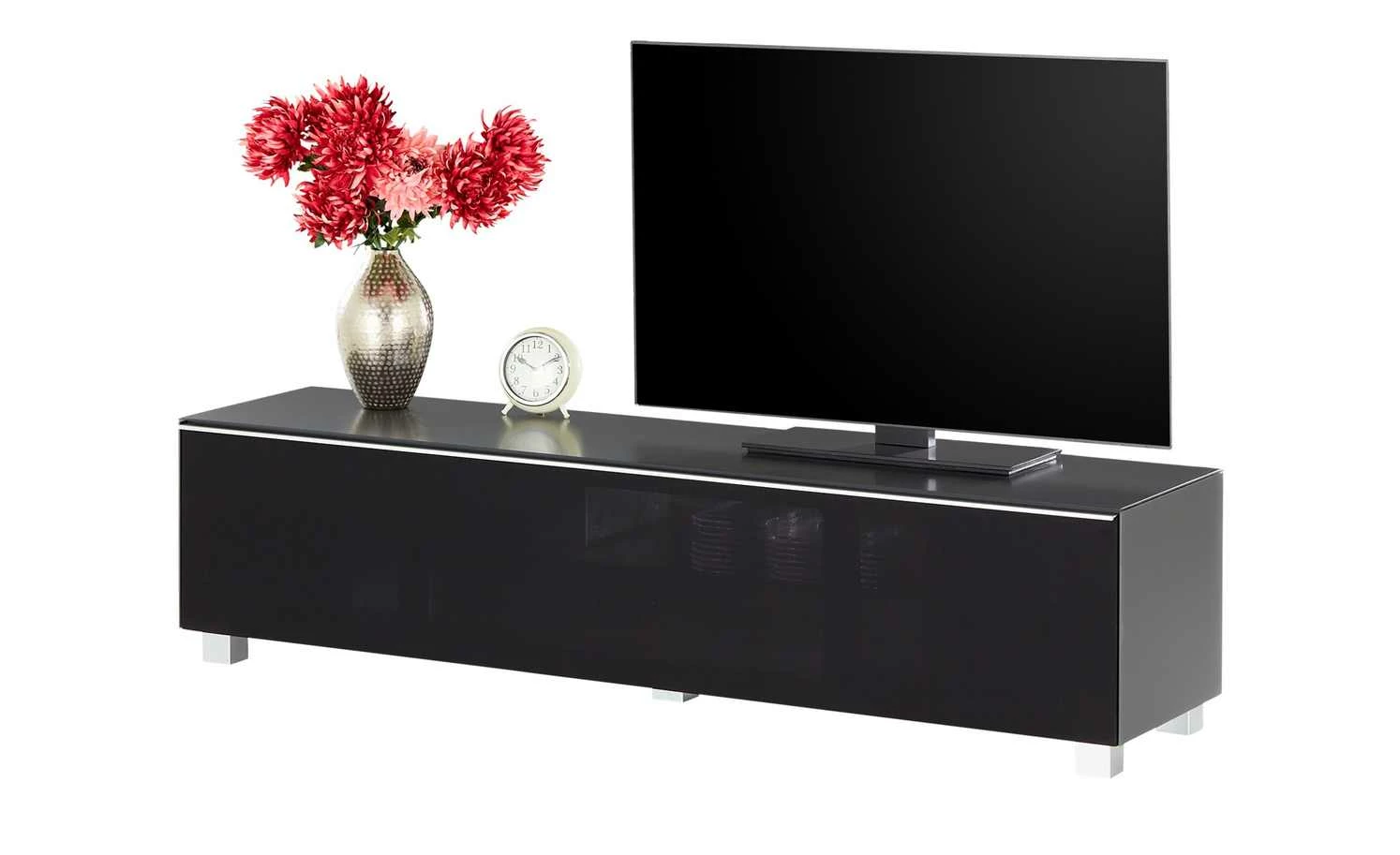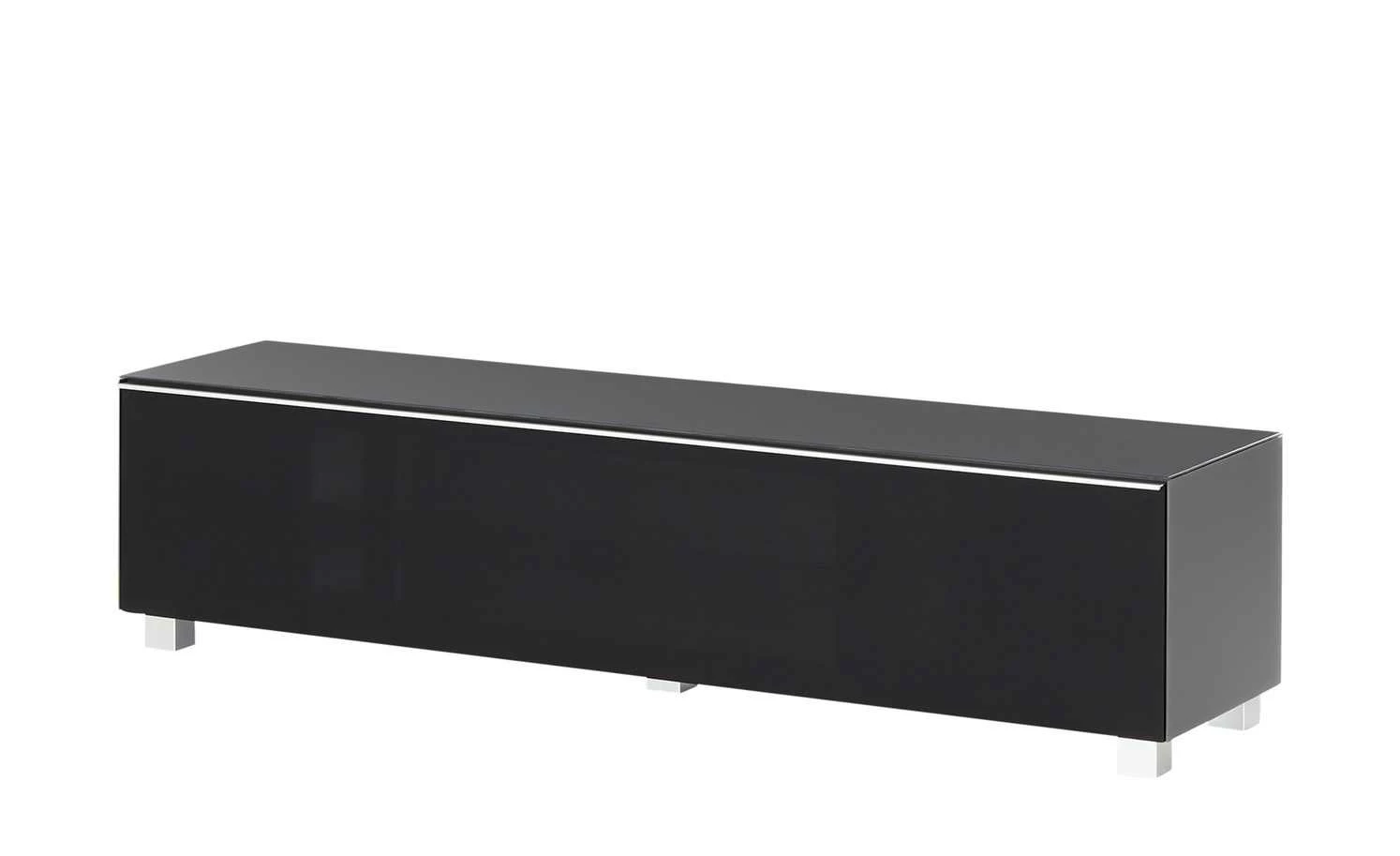 Das Lowboard Soundbase L ist der ideale Platz für Ihren Fernseher. Hinter der Klappe finden außerdem DVD-Player oder Festplattenrecorder ihren Platz. In erster Linie ist Soundbase L aber für ein Soundsystem gedacht, dass im Inneren des Lowboardes platziert werden kann. Dafür stehen hinter der Klappe zwei große Fächer zur Verfügung. Das Lowboard ist nicht nur ein Stauraum, sondern auch eine Sound-Lösung. Die Klappe ist auf der Vorderseite nämlich mit einem speziellen Akustik-Stoff versehen. Dieser bringt den Ton des Soundsystems besonders gut zur Geltung. So können Sie beim Fernsehen oder Musik hören ein ganz besonderes Klangerlebnis genießen. Neben den technischen Raffinessen sieht das Lowboard auch gut aus. Der Korpus hat eine Oberfläche aus robustem Glas mit einem edlen matten Finish.