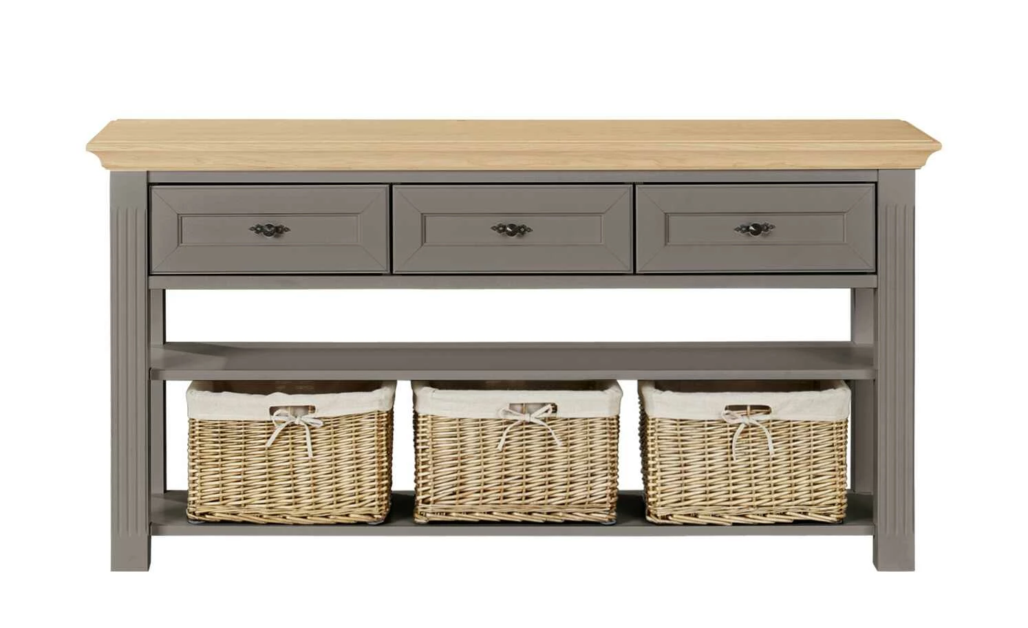 - Mehr zum Material: Absetzung aus Asteiche furniert, Korpus und Front aus Holzwerkstoff Graphit (Grau) lackiert