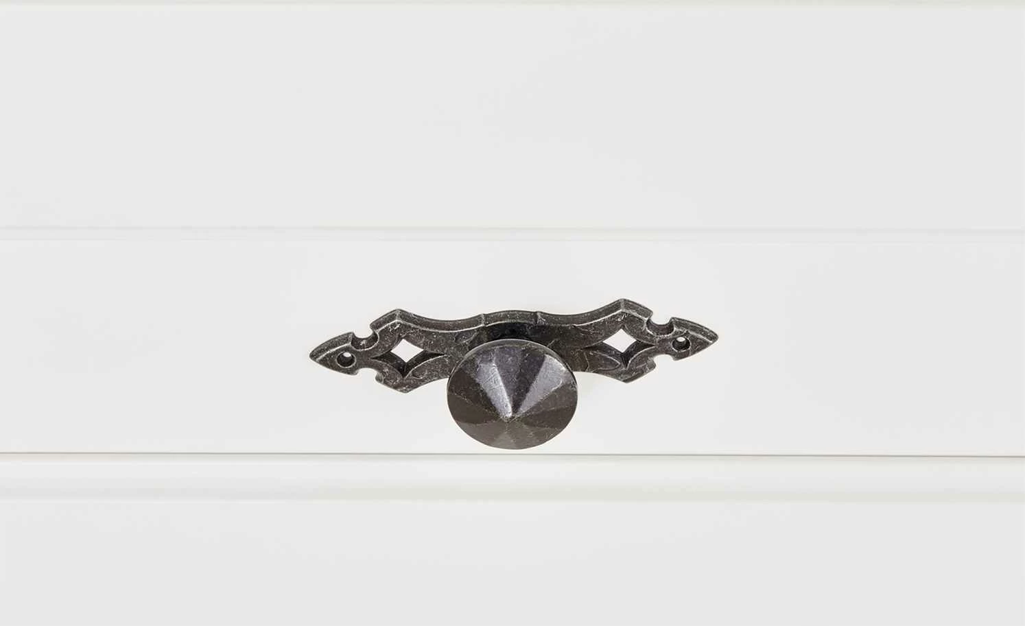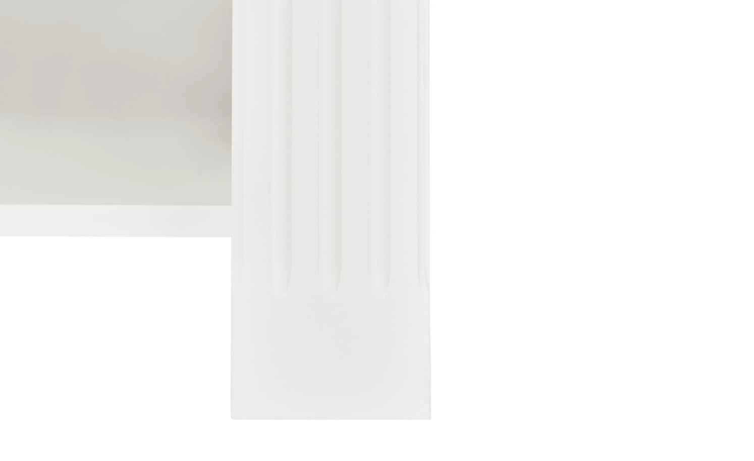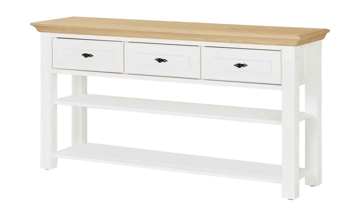 - Mehr zum Material: Korpus und Front aus Holzwerkstoff Weiß lackiert, Absetzung aus Asteiche furniert