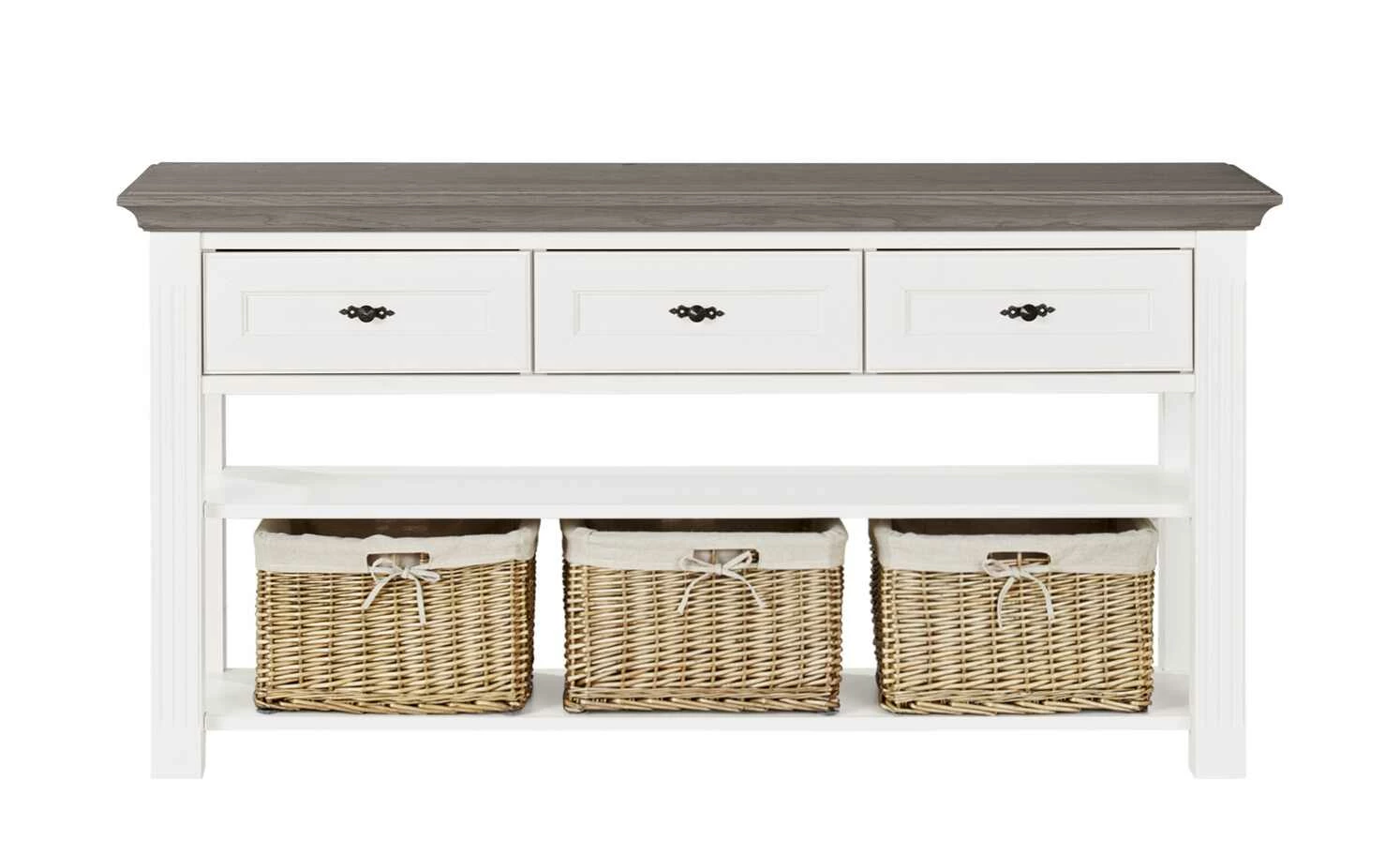 - Mehr zum Material: Korpus und Front aus Holzwerkstoff Weiß lackiert, Absetzung aus Holzwerkstoff Graphit (Grau) lackiert