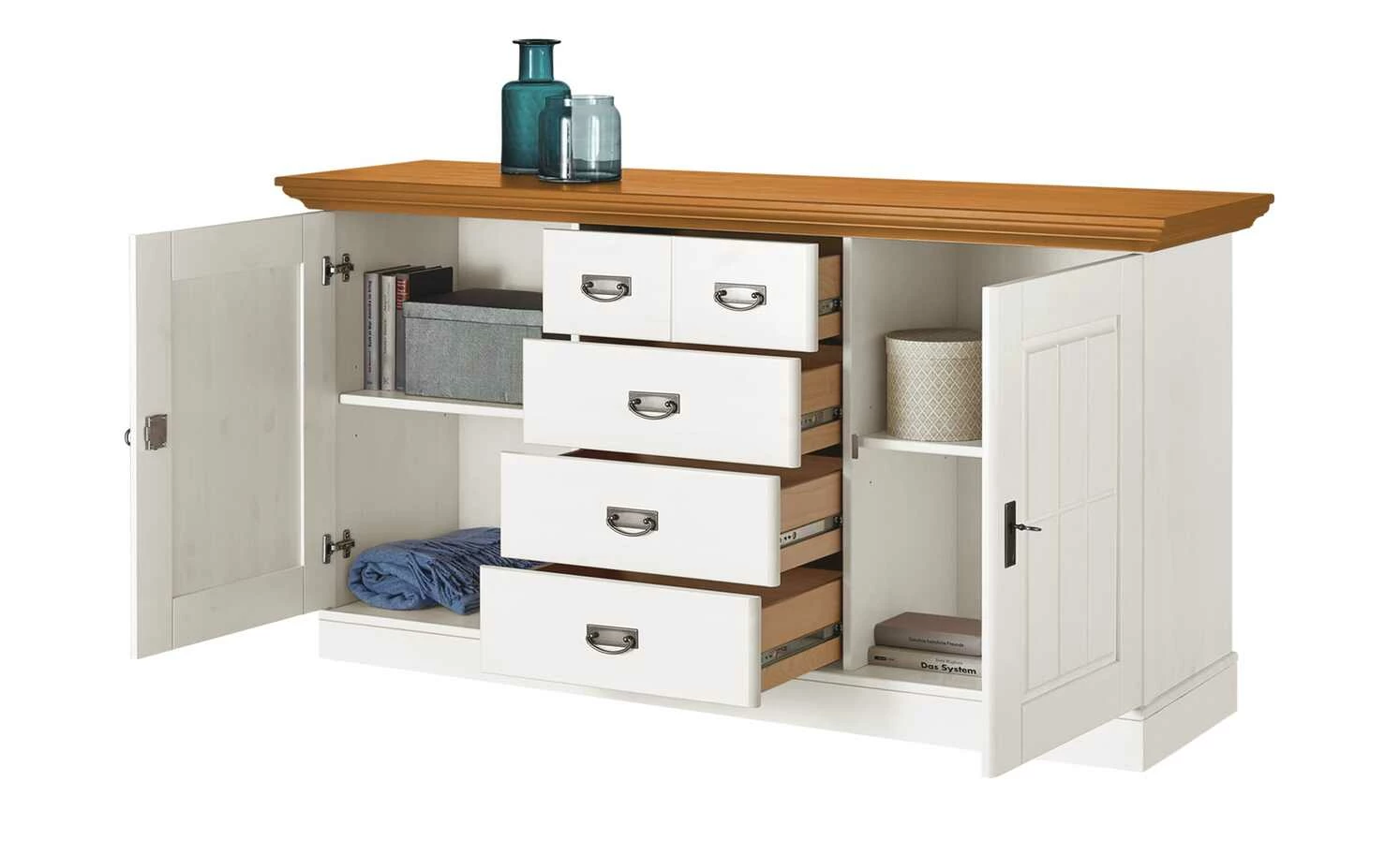 - Mehr zu Ausstattung / Funktion: lässt sich mit dem Vitrinenaufsatz Florian (separat erhältlich unter „Zubehör“) zu einem Buffet kombinieren
