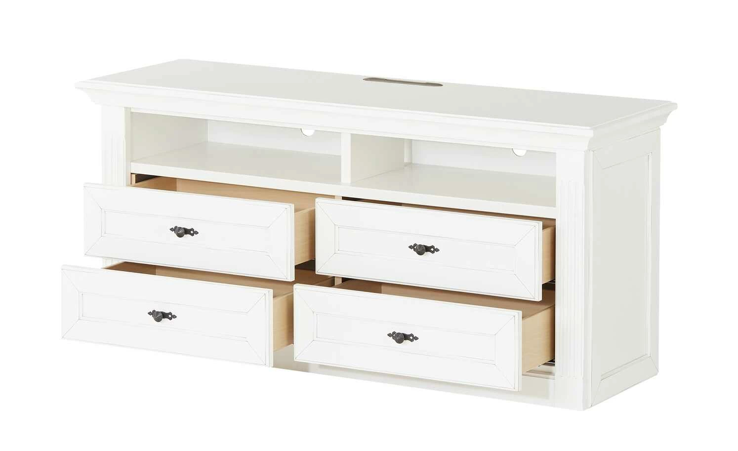 - Mehr zu Ausstattung / Funktion: Schubkästen sind mit kugelgelagerten Unterflurauszügen, Selbsteinzug und Dämpfung ausgestattet, Gerätefächer mit je 1 Kabeldurchlass, Belastbarkeit der Schubkästen: max. 15 kg