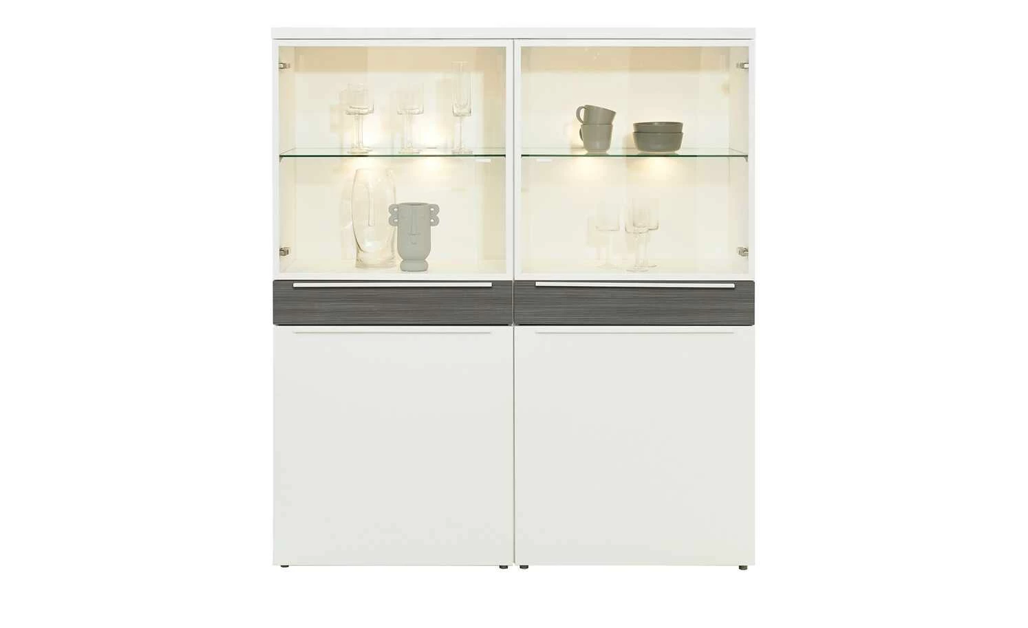 - Ausführung: mit 2 Glastüren, 2 Türen und 2 Akzent-Schubkästen