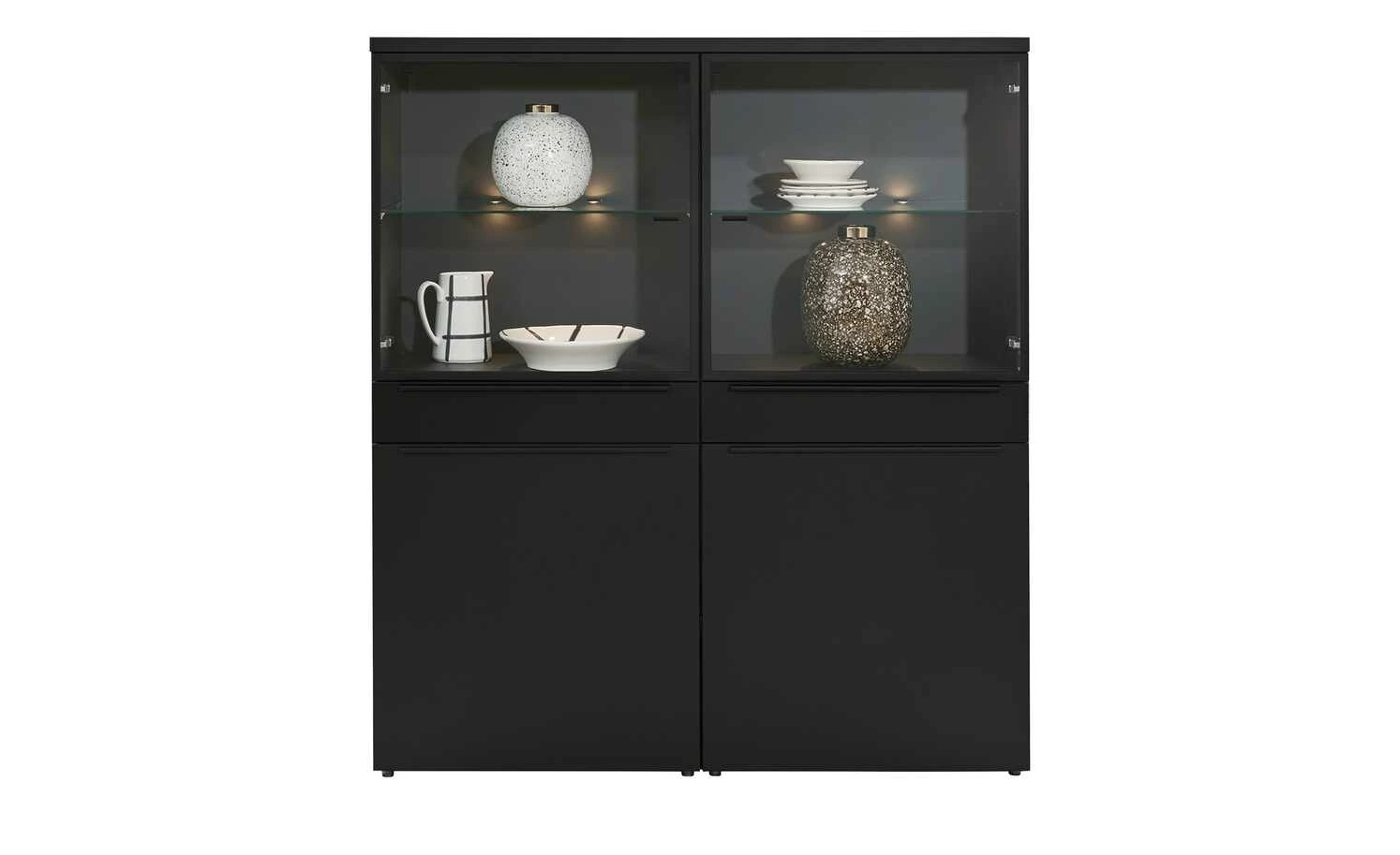 - Ausführung: mit 2 Glastüren, 2 Türen und 2 Akzent-Schubkästen