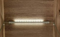 uno Vitrine Onyx | Graphitgrau / Eiche Trüffel sägerau (Nachbildung) Spotbeleuchtung Glastür links
