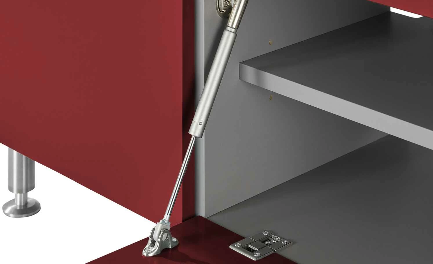 - Mehr zu Ausstattung / Funktion: grifflose Fronten , Designfuß auf transparenten Gleitern