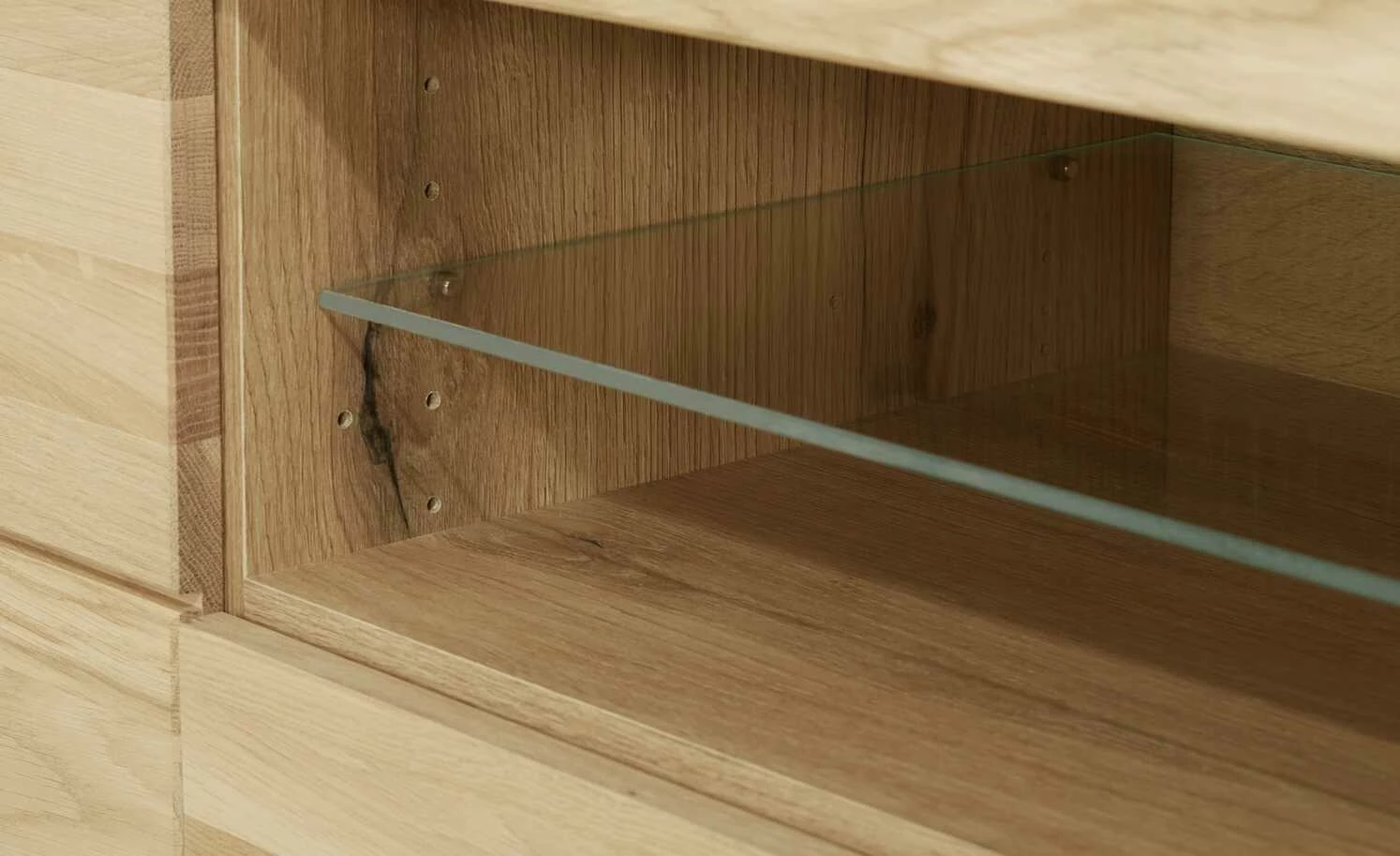 - Mehr zu Ausstattung / Funktion: Schubkasten mit Selbsteinzug, separates Scandi-Fuß-Set unter Zubehör erhältlich, Rahmen aus Massivholz geölt, 1Glasboden