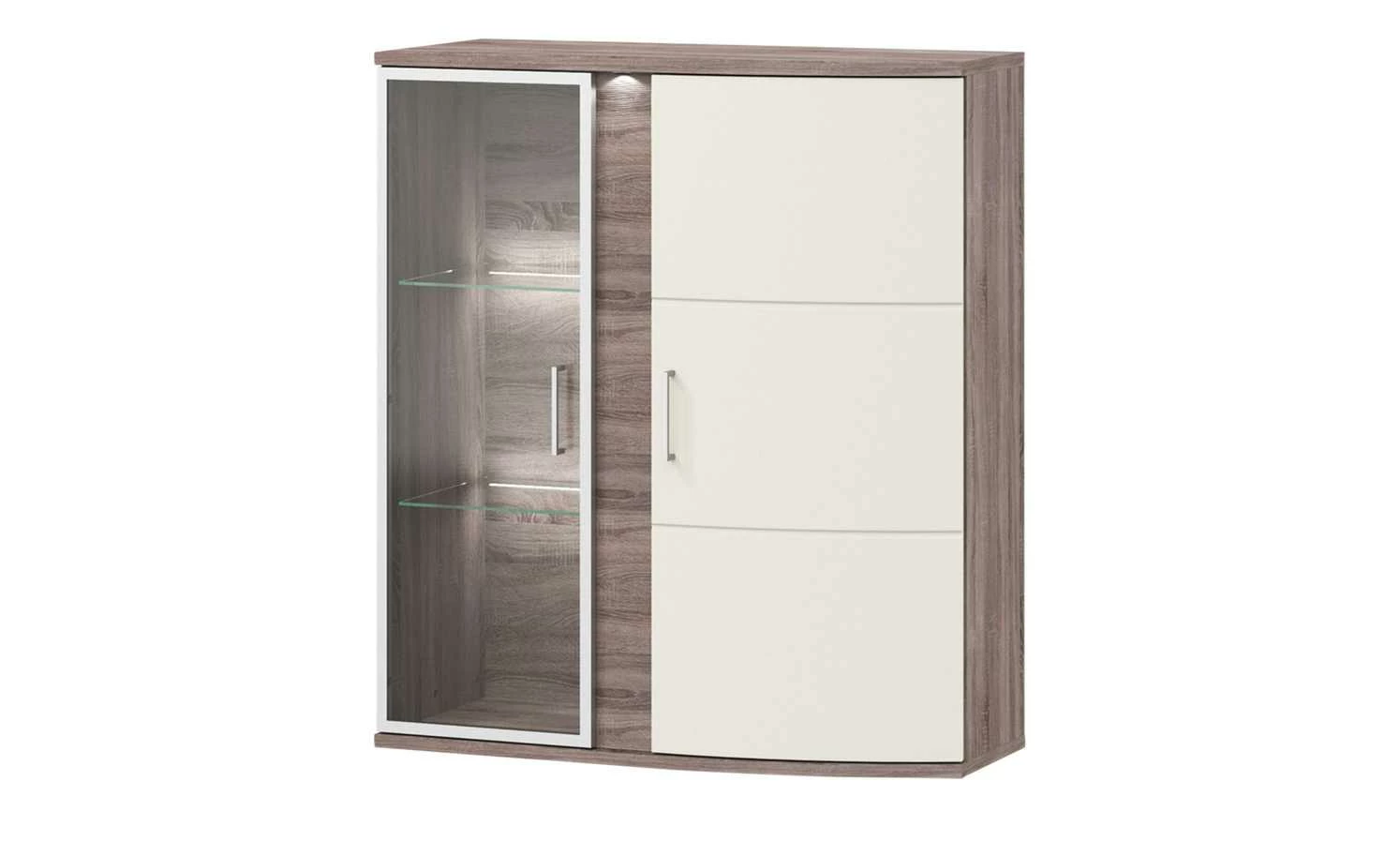 uno Hängevitrine Onyx | Vanille / Eiche Trüffel sägerau (Nachbildung) Spotbeleuchtung Glastür links