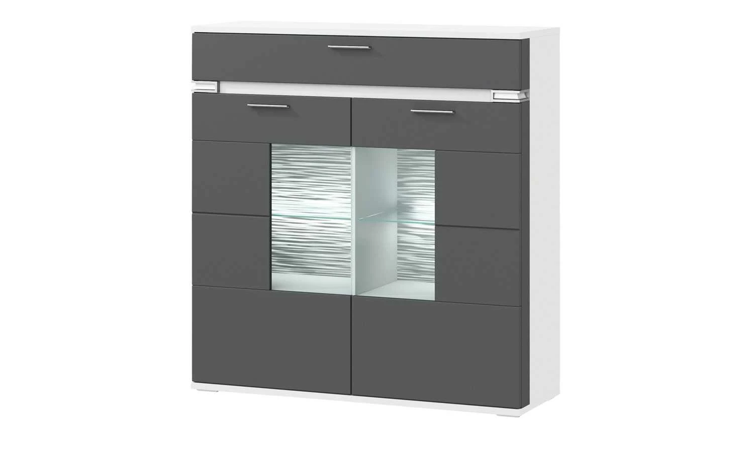 - Mehr zum Material: Einlegeböden: 2 aus Glas und 4 Holzwerkstoff foliert