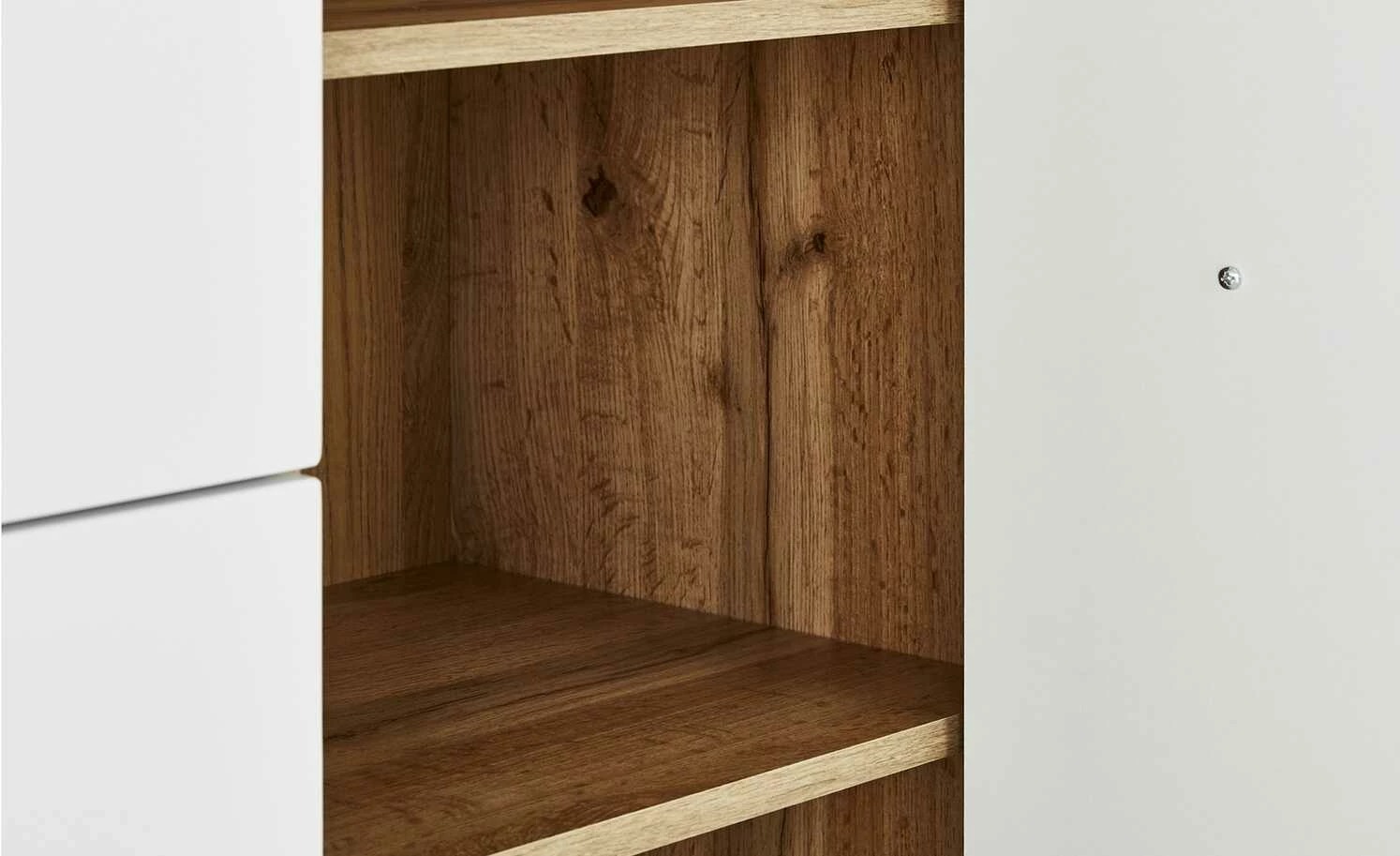 - Weiße Front mit auffälliger Hirnholzoptik