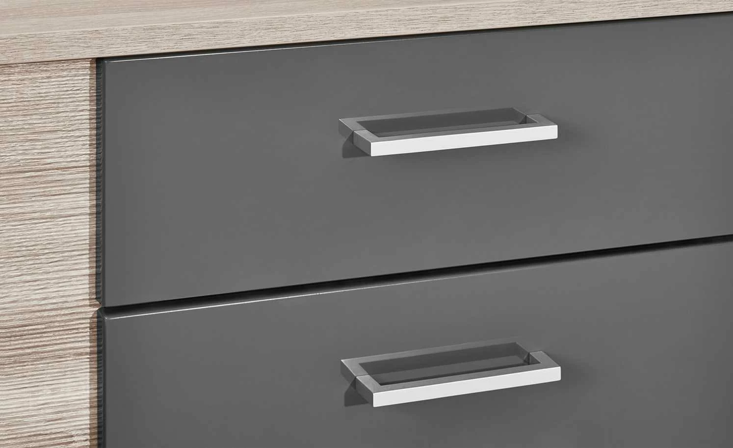 - Mehr zum Material: Frontabsetzung in Korpusfarben geschroppt