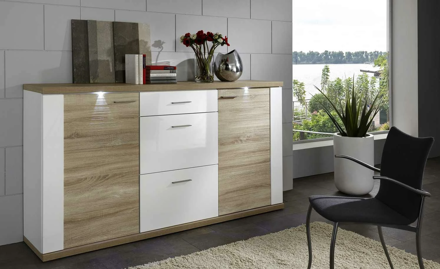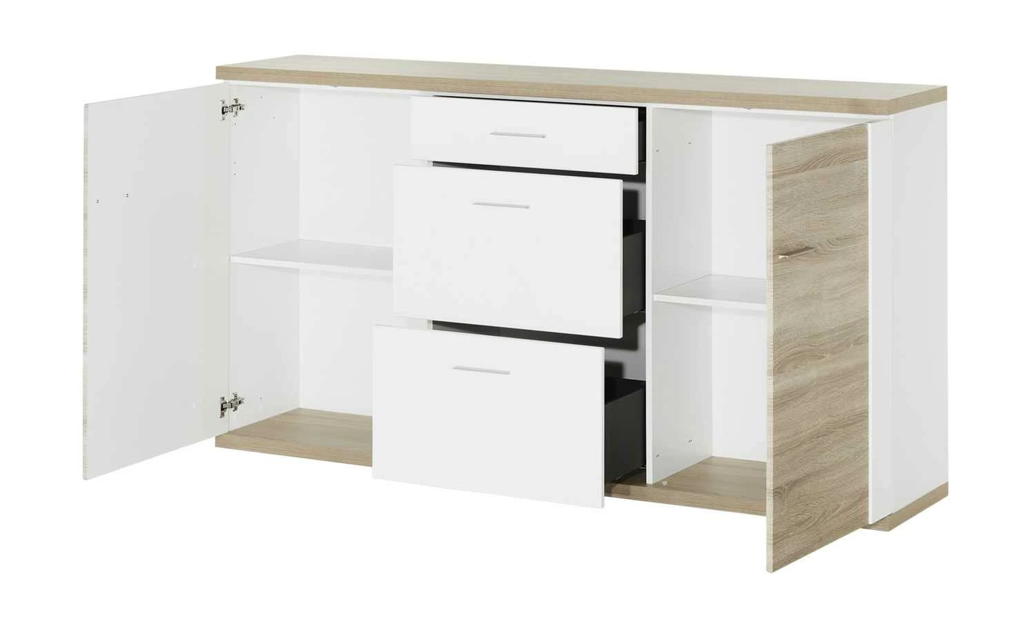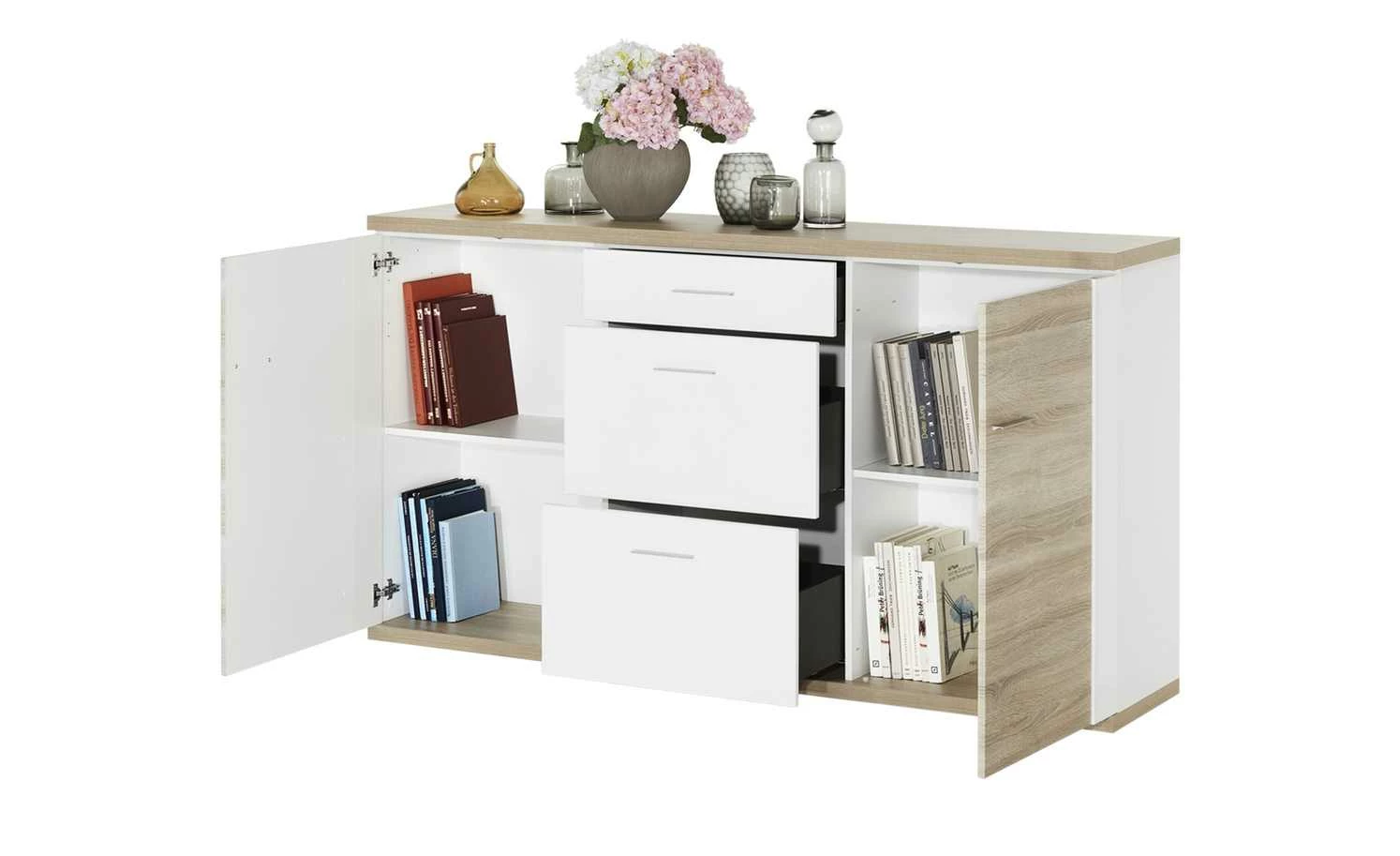 - Farbe / Dekor: Weiß / Eiche sägerau (Nachbildung)