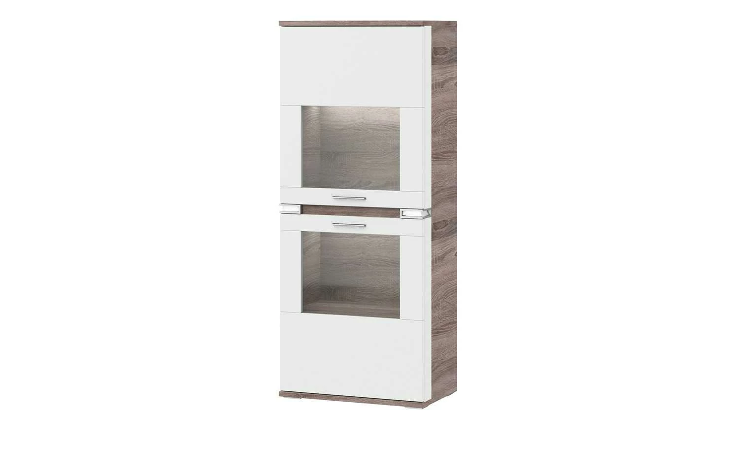 uno Vitrine Katt | Weiß / Eiche Trüffel (Nachbildung) links Frontbeleuchtung