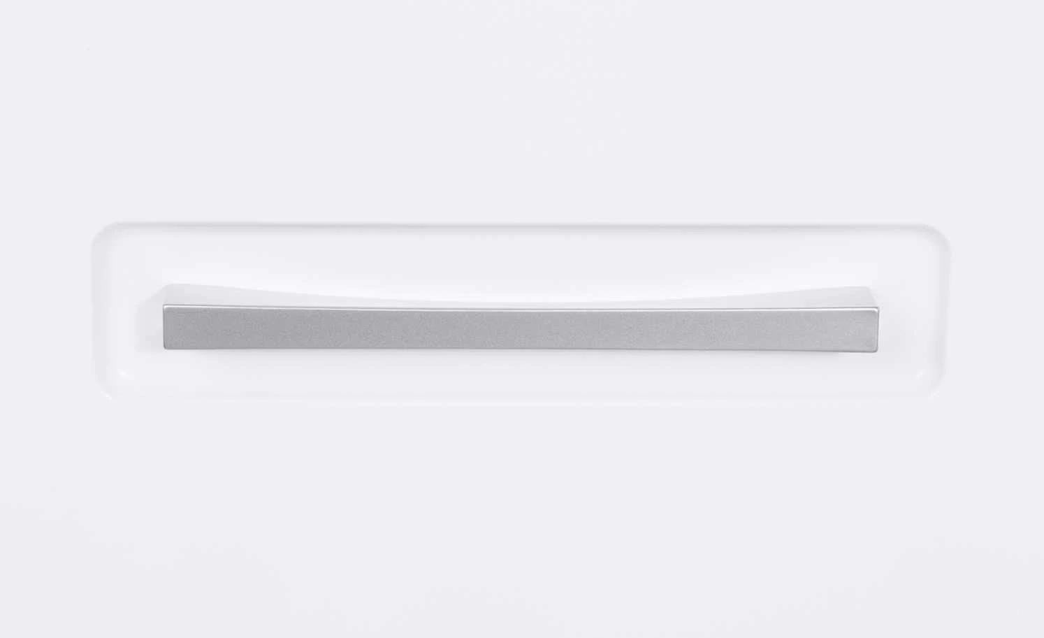 - Mehr zum Material: Korpus mit edelstahlfarbigem Metallrahmen, Rückwand hinter dem Glaseinsatz: Grau in 3D Design