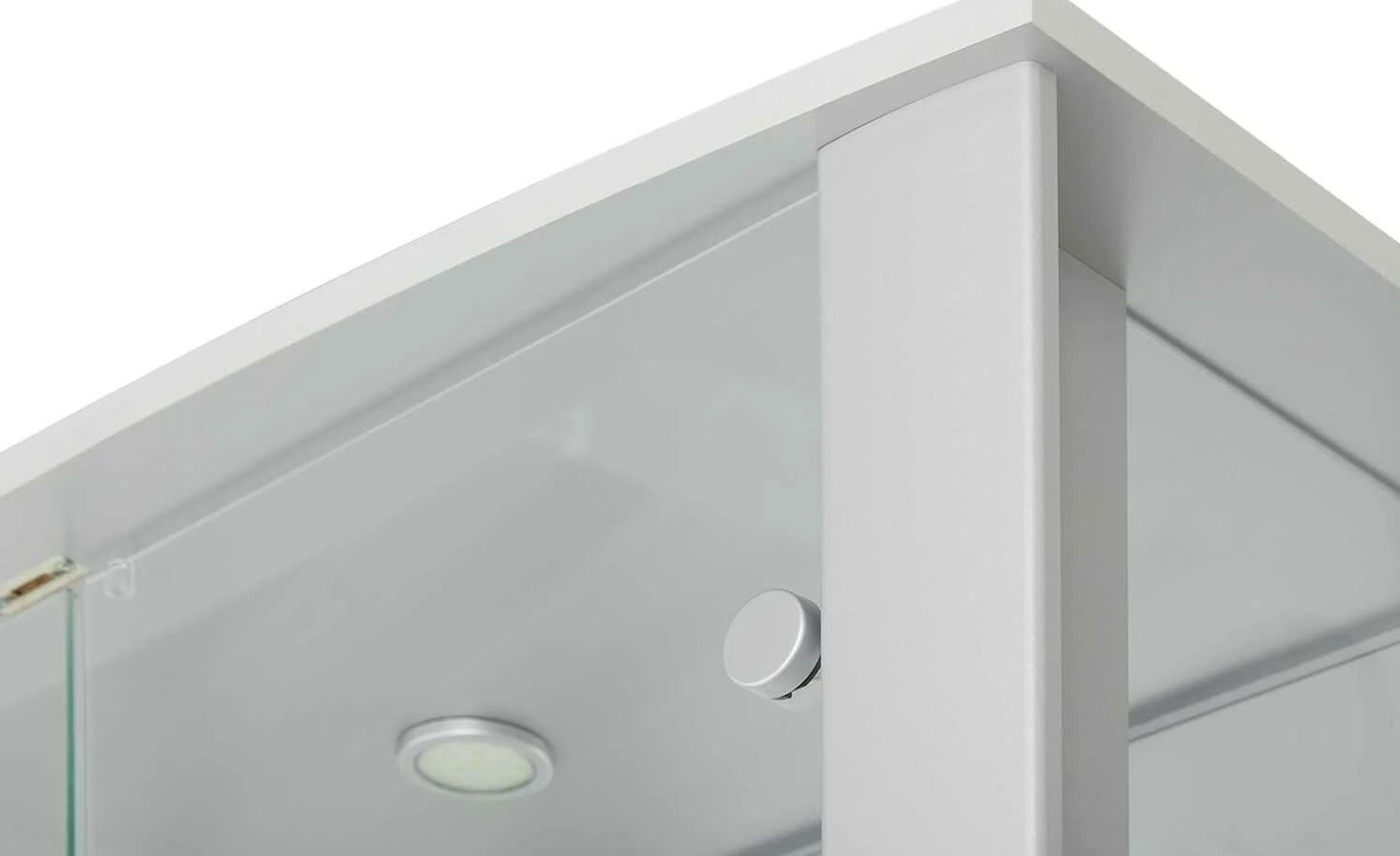 - Mehr zur Ausführung: Belastbar je Einlegeboden: 5kg, inklusive Vitrinenschloss