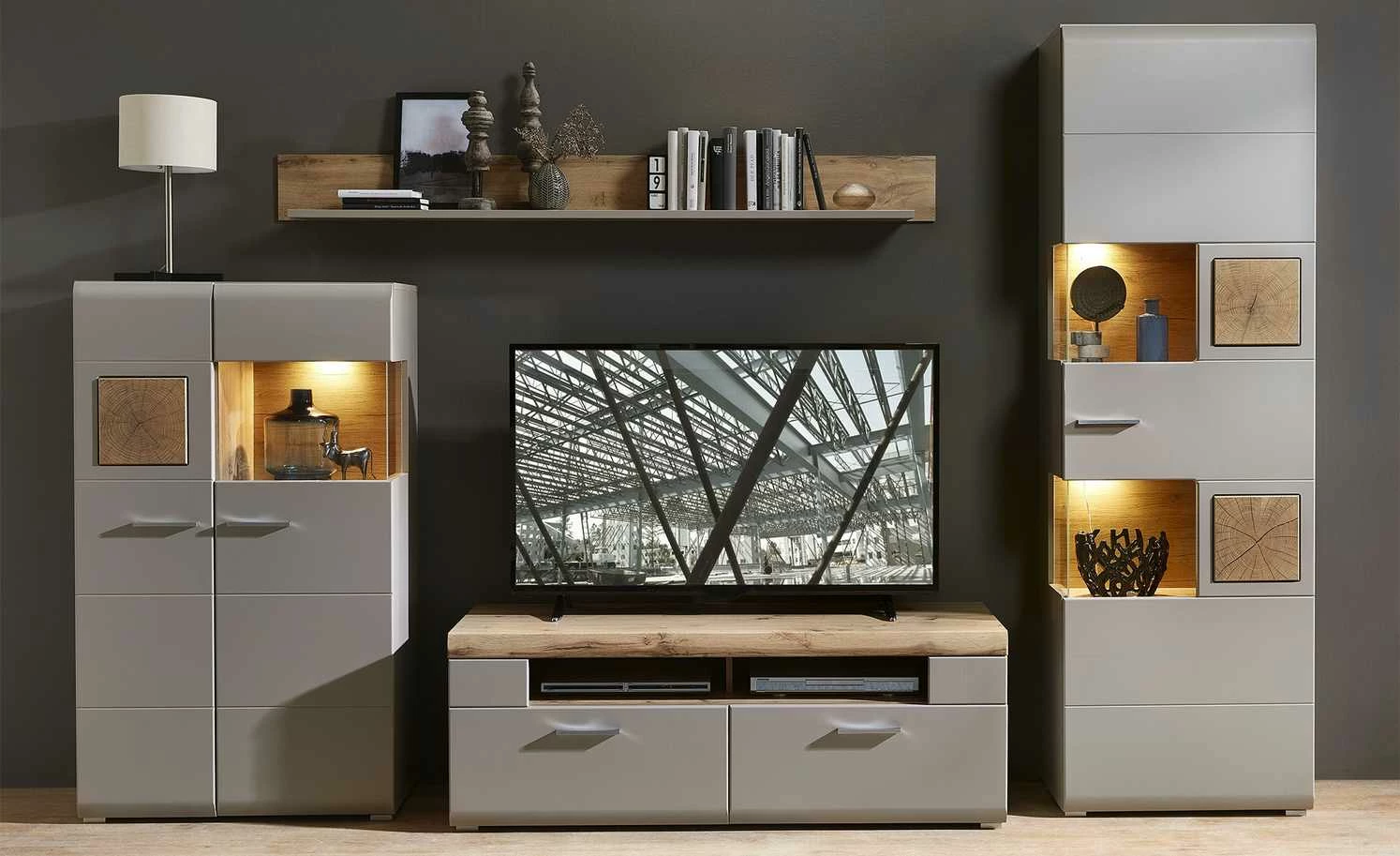 Vitrine Cortina | Basaltgrau / Eiche Altholz (Nachbildung)