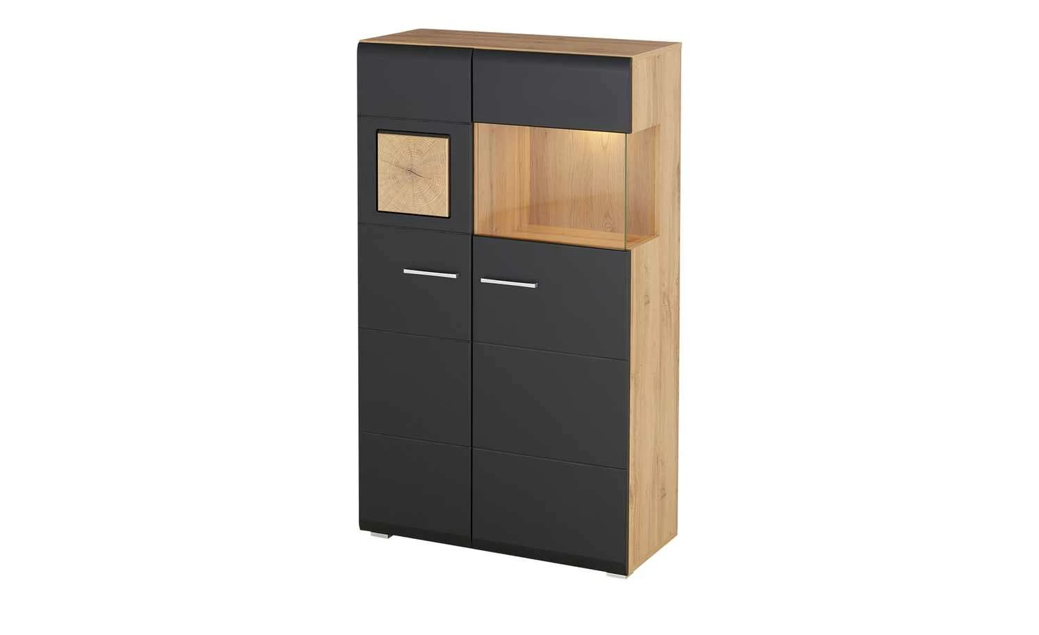 Vitrine Cortina | Schwarz / Eiche Altholz (Nachbildung)