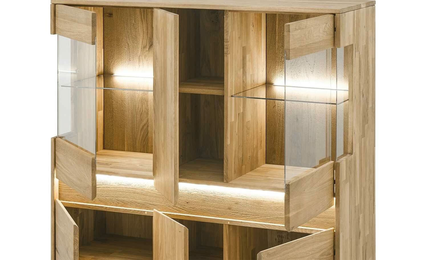 - nicht im Lieferumfang enthalten: Beleuchtung und sandgestrahlte Rückwand